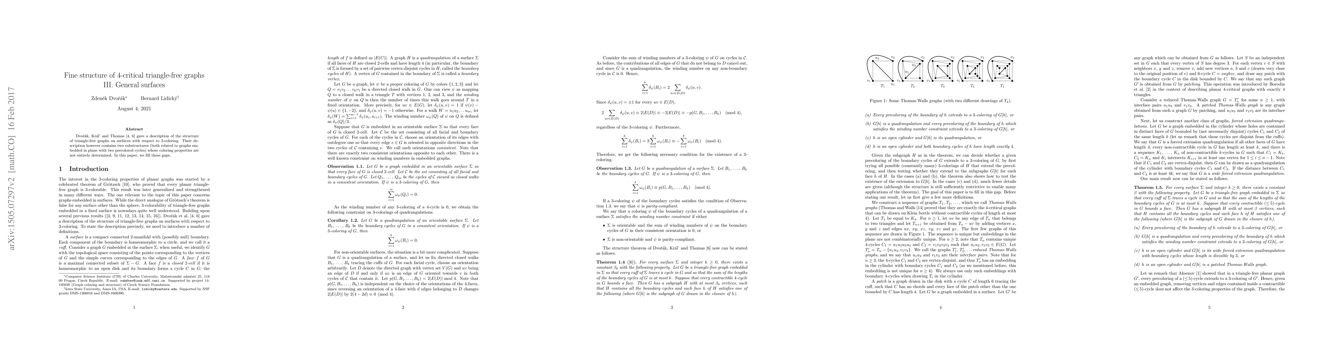 This paper addresses the incomplete structure described by Dvořák, Kráľ, and Thomas for triangle-free graphs on surfaces regarding 3-coloring, specifically focusing on two undetermined substructures related to embedded graphs with precolored cycles, and resolves their coloring properties.