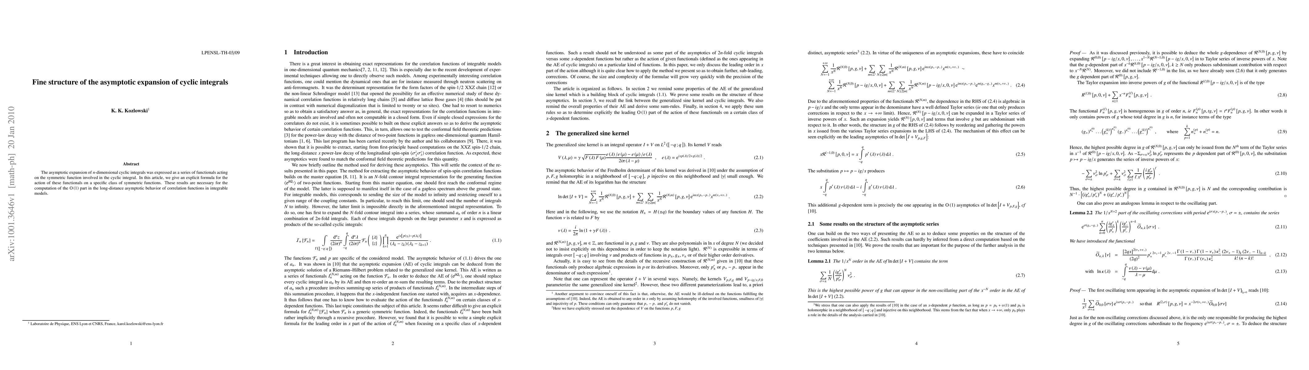 The asymptotic expansion of $n$-dimensional cyclic integrals was expressed as a series of functionals acting on the symmetric function involved in the cyclic integral. In this article, we give an explicit formula for the action of these functionals on a specific class of symmetric functions. These results are necessary for the computation of the O(1) part in the long-distance asymptotic behavior of correlation functions in integrable models.