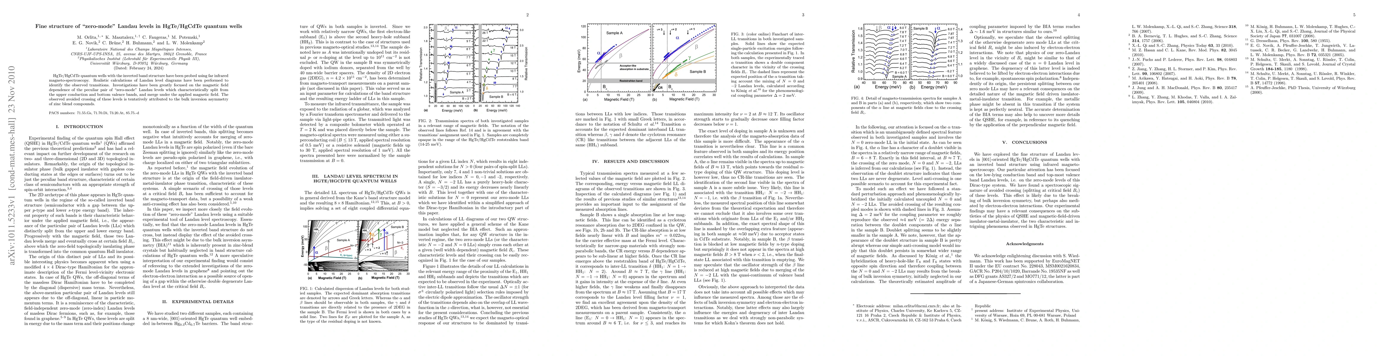 This study investigates the unique "zero-mode" Landau levels in inverted HgTe/HgCdTe quantum wells using far infrared magneto-spectroscopy. The observed splitting and merging of these levels under magnetic fields are attributed to the bulk inversion asymmetry, providing insights into the fine structure of these quantum states.