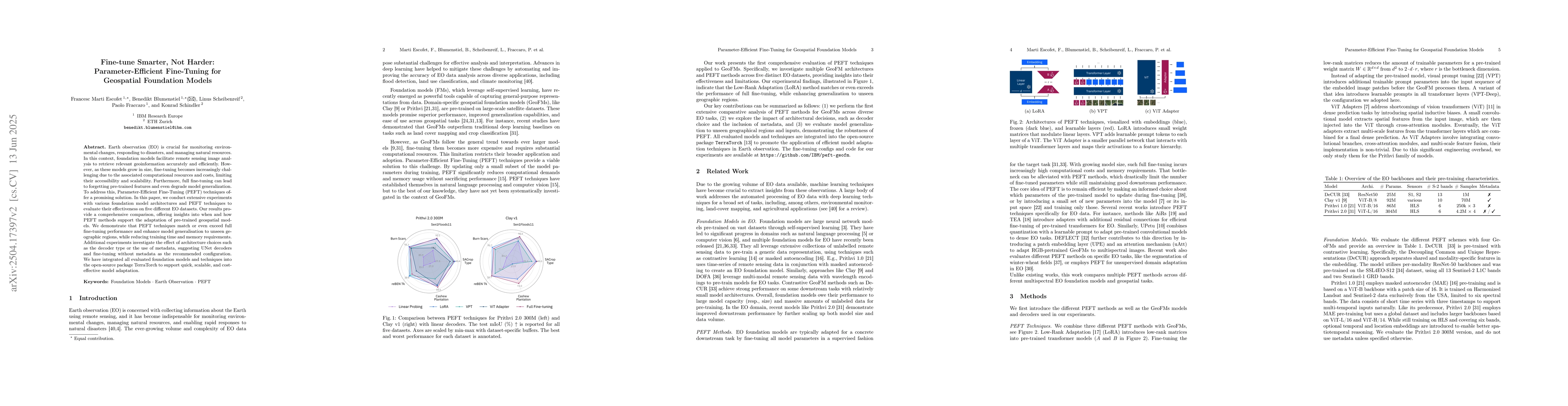 The paper evaluates Parameter-Efficient Fine-Tuning (PEFT) techniques for geospatial foundation models, comparing different fine-tuning strategies, geographic generalization, and decoder architectures using extensive experiments.