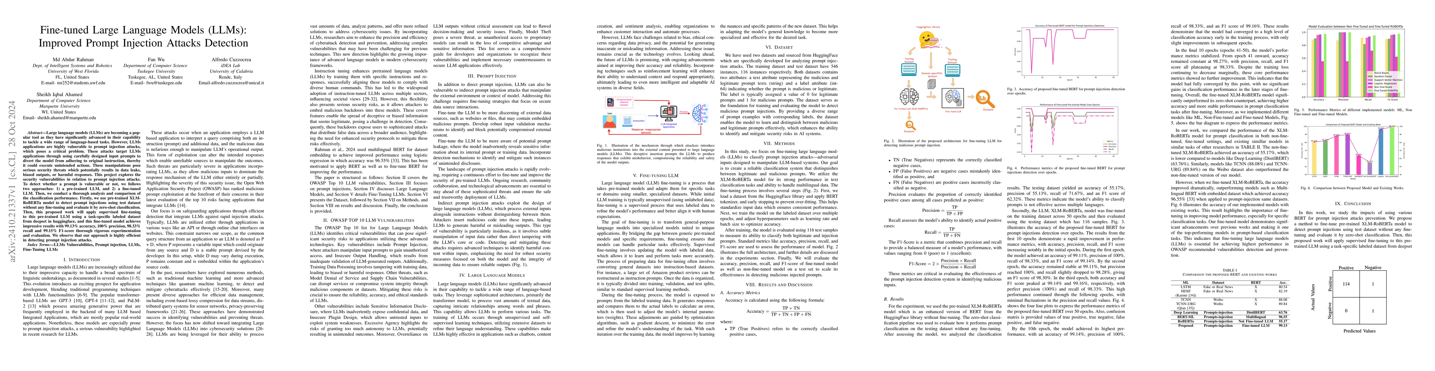 This research investigates vulnerabilities in large language models (LLMs) to prompt injection attacks, employing both pre-trained and fine-tuned models to detect such threats. A fine-tuned LLM achieved 99.13% accuracy, demonstrating superior performance over pre-trained models in identifying prompt injection vulnerabilities.