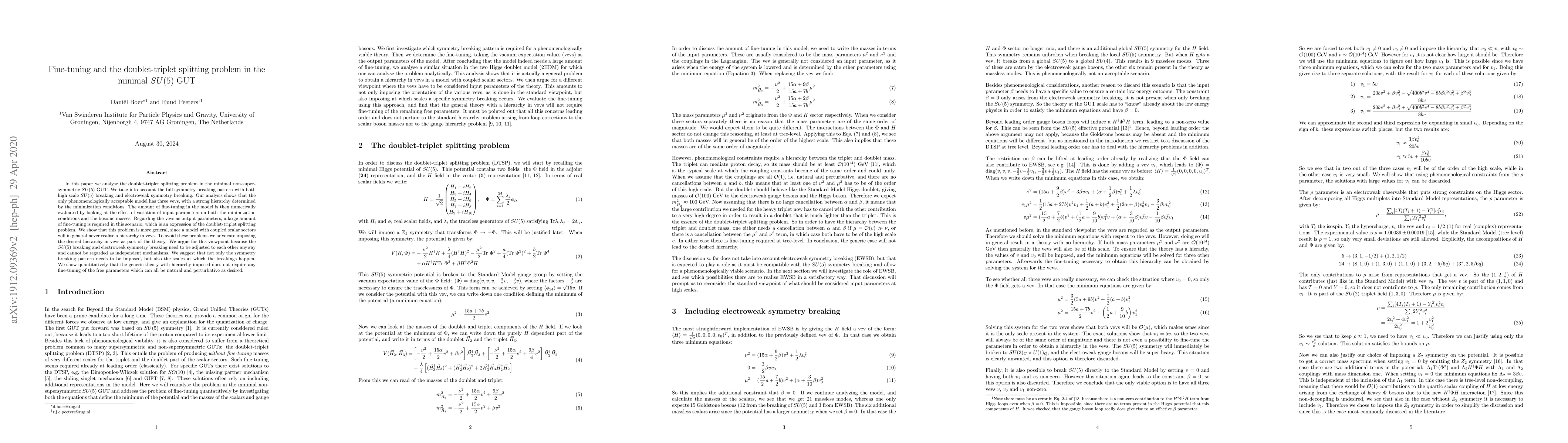 Researchers analyze the doublet-triplet splitting problem in minimal SU(5) GUTs, finding that imposing hierarchy on vevs eliminates fine-tuning, making the model more natural and perturbative.