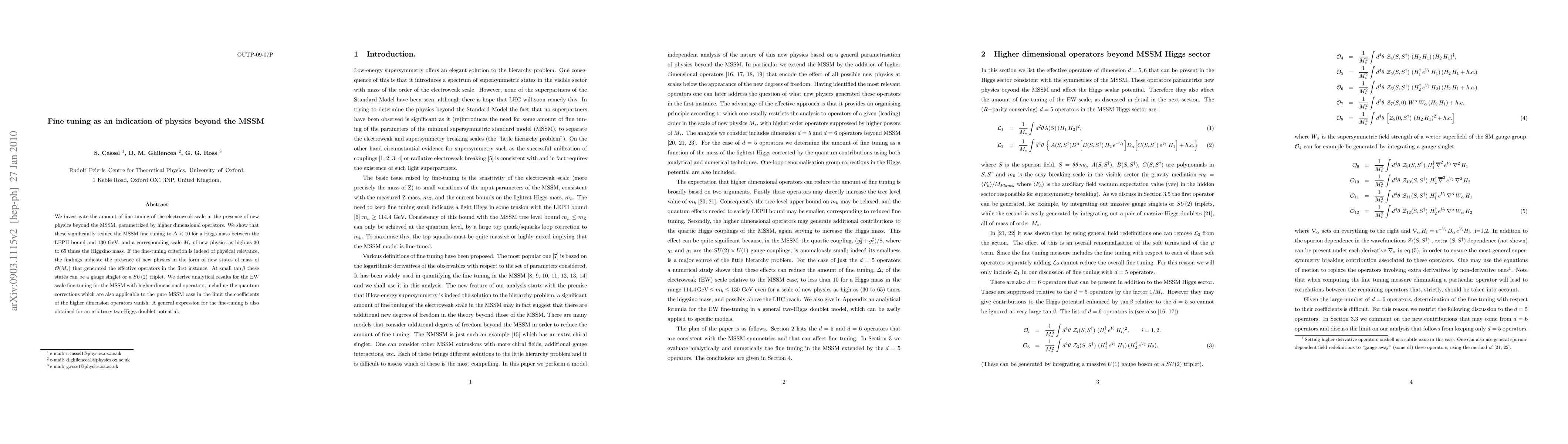 This paper examines how new physics beyond the Minimal Supersymmetric Standard Model (MSSM) reduces fine-tuning at the electroweak scale, showing significant reductions for a Higgs mass up to 130 GeV. The findings suggest that new states with masses around 30 to 65 times the Higgsino mass may exist, indicating the presence of physics beyond the MSSM.
