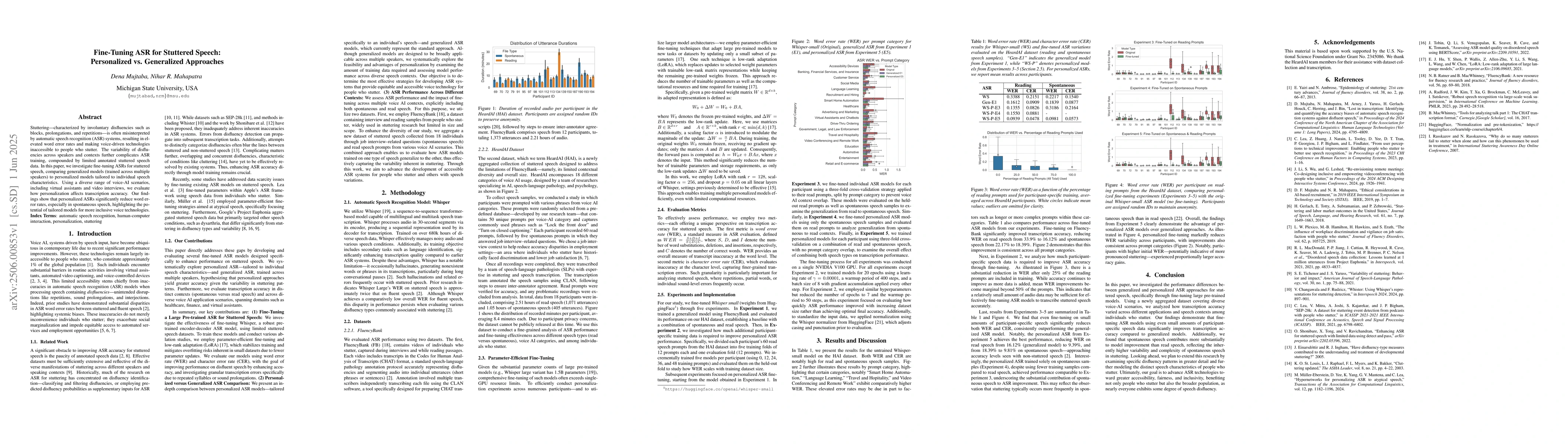 The paper presents a comparative analysis of personalized versus generalized fine-tuning approaches for ASR systems specifically designed to handle stuttered speech, showcasing the effectiveness of personalization.