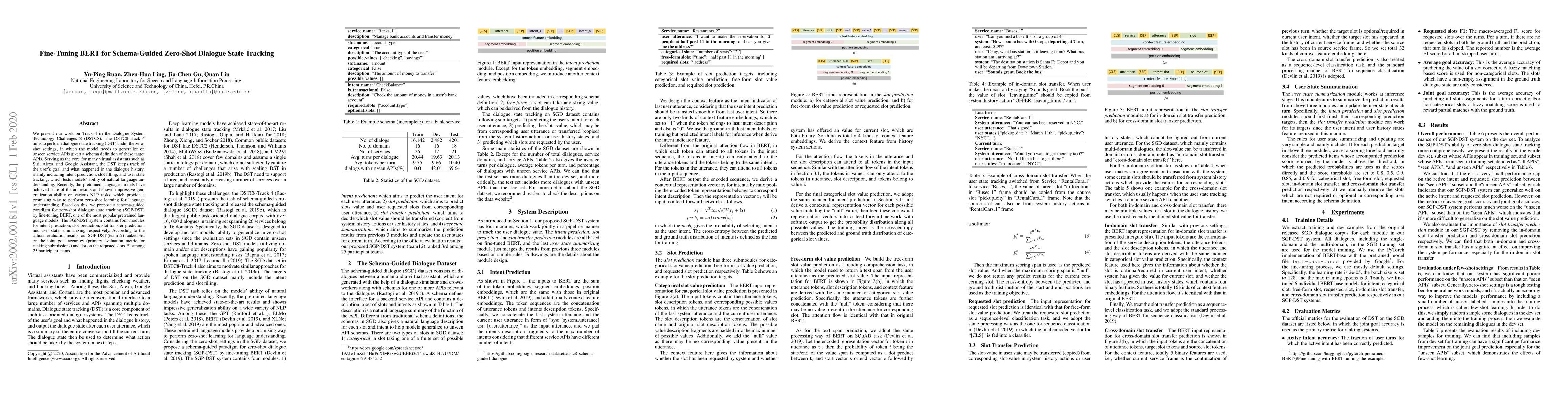 This paper proposes a schema-guided paradigm for zero-shot dialogue state tracking by fine-tuning BERT, achieving state-of-the-art results in DSTC8 Track 4. The SGP-DST system ranks 3rd in joint goal accuracy and 1st in requested slots F1 among 25 teams.