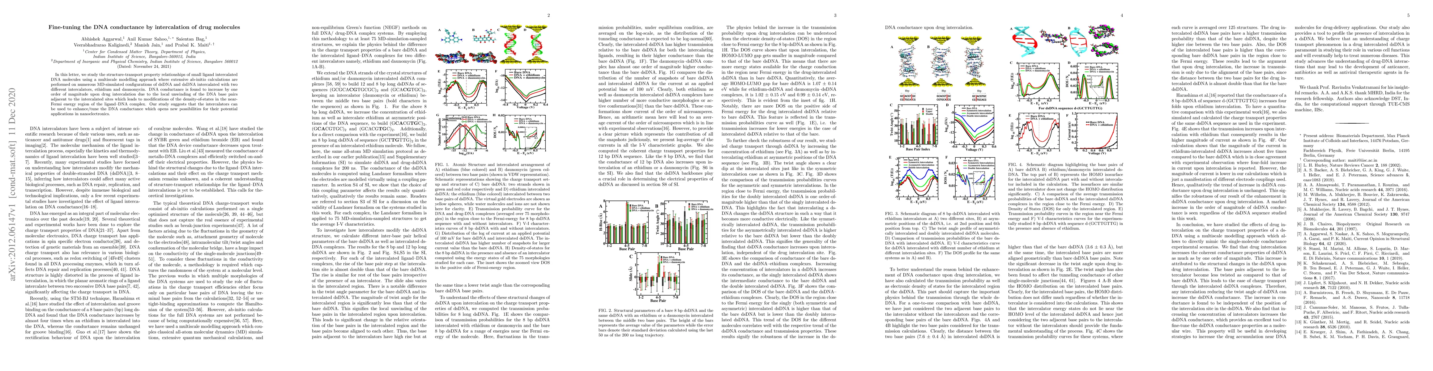 In this letter, we study the structure-transport property relationships of small ligand intercalated DNA molecules using a multiscale modelling approach where extensive ab-initio calculations are performed on numerous MD-simulated configurations of dsDNA and dsDNA intercalated with two different intercalators, ethidium and daunomycin. DNA conductance is found to increase by one order of magnitude upon drug intercalation due to the local unwinding of the DNA base pairs adjacent to the intercalated sites which leads to modifications of the density-of-states in the near-Fermi energy region of the ligand-DNA complex. Our study suggests that the intercalators can be used to enhance/tune the DNA conductance which opens new possibilities for their potential applications in nanoelectronics.