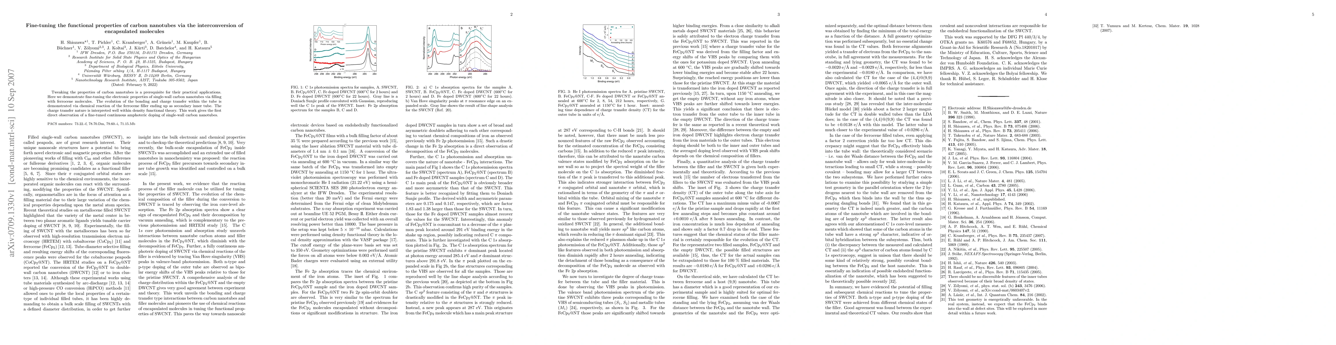 This paper demonstrates fine-tuning the electronic properties of single-wall carbon nanotubes by encapsulating ferrocene molecules, which undergo chemical reactions to form a secondary inner tube, enabling continuous amphoteric doping. Density functional theory supports the interpretation of the charge transfer and bonding evolution.
