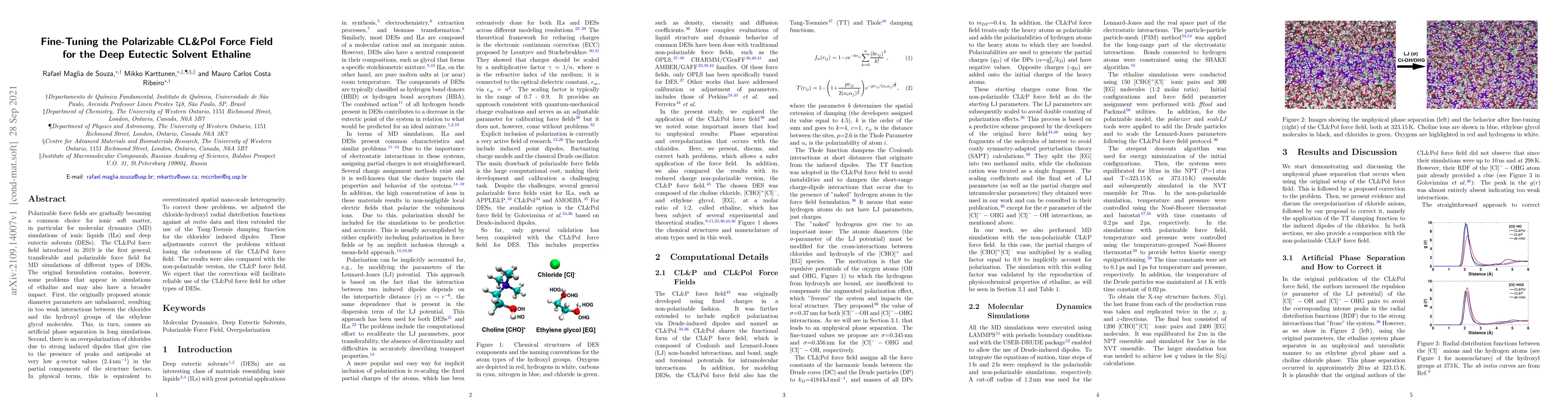 Polarizable force fields are gradually becoming a common choice for ionic soft matter, in particular for molecular dynamics (MD) simulations of ionic liquids (ILs) and deep eutectic solvents (DESs). The CL&Pol force field introduced in 2019 is the first general, transferable and polarizable force field for MD simulations of different types of DESs. The original formulation contains, however, some problems that appear in simulations of ethaline and may also have a broader impact. First, the originally proposed atomic diameter parameters are unbalanced, resulting in too weak interactions between the chlorides and the hydroxyl groups of the ethylene glycol molecules. This, in turn, causes an artificial phase separation in long simulations. Second, there is an overpolarization of chlorides due to strong induced dipoles that give rise to the presence of peaks and antipeaks at very low $q$-vector values (\SI{2.4}{\per\nano\meter}) in the partial components of the structure factors. In physical terms, this is equivalent to overestimated spatial nano-scale heterogeneity. To correct these problems, we adjusted the chloride-hydroxyl radial distribution functions against \textit{ab initio} data and then extended the use of the Tang-Toennis damping function for the chlorides' induced dipoles. These adjustments correct the problems without losing the robustness of the CL\&Pol force field. The results were also compared with the non-polarizable version, the CL&P force field. We expect that the corrections will facilitate reliable use of the CL&Pol force field for other types of DESs.