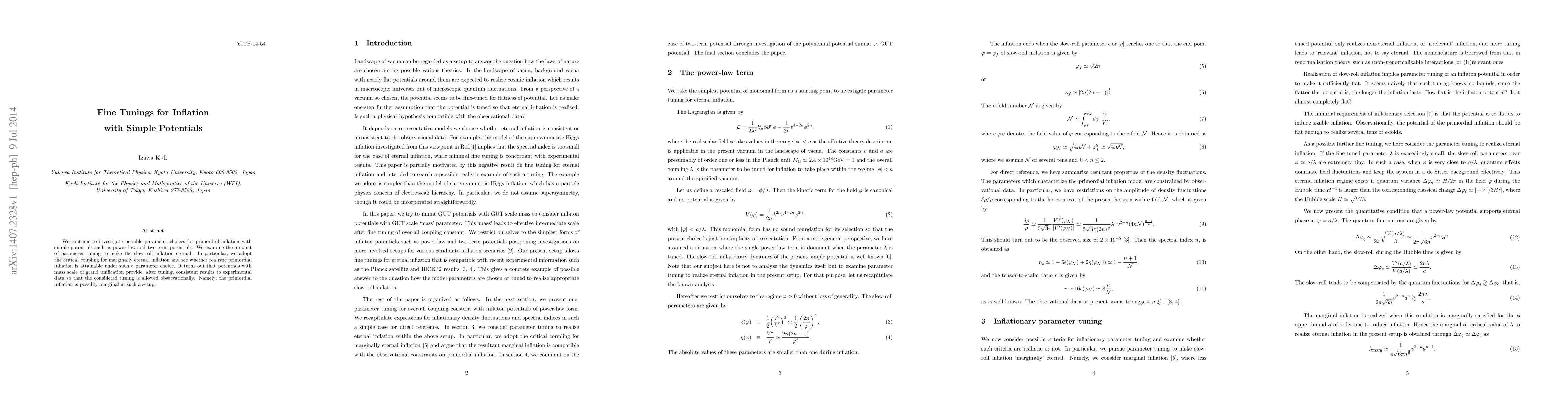 This paper explores parameter choices for primordial inflation using simple potentials like power-law and two-term potentials, focusing on the necessary tuning for eternal slow-roll inflation. It finds that tuning potentials with a mass scale of grand unification can yield consistent, observationally allowed results, suggesting that marginal inflation might be achievable.