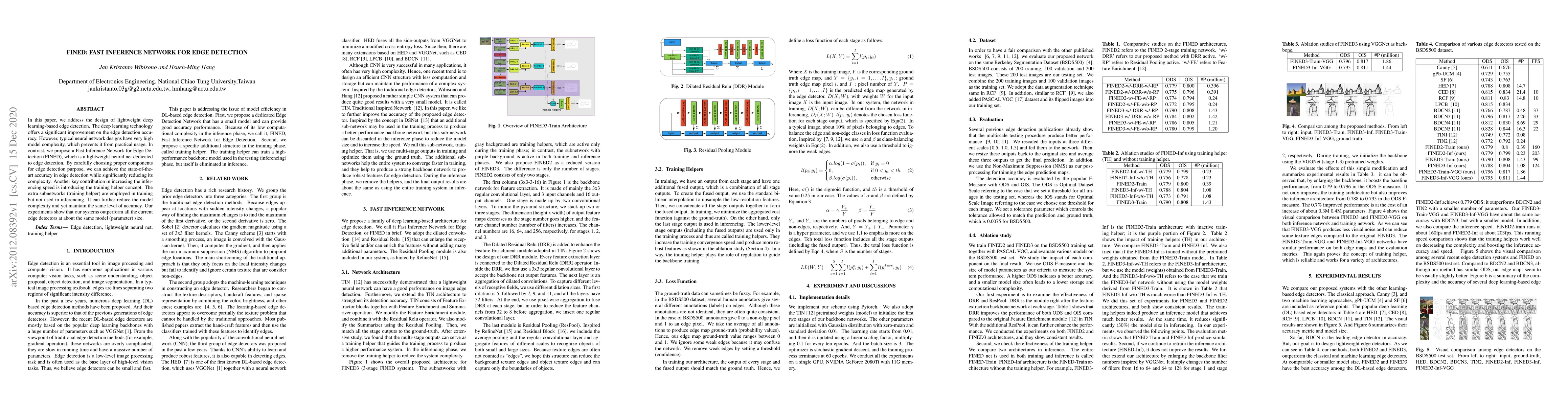 The paper proposes FINED, a lightweight neural network for edge detection that achieves state-of-the-art accuracy while significantly reducing complexity. The use of training helper subnetworks further enhances inferencing speed and maintains accuracy without increasing model size.