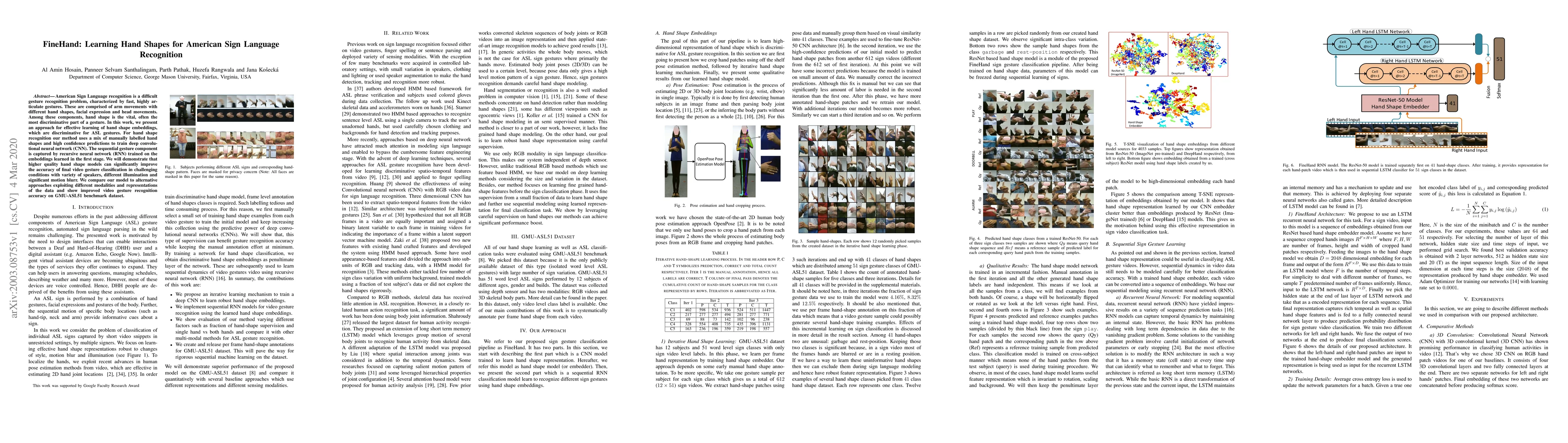 This paper proposes a method for recognizing American Sign Language (ASL) gestures by focusing on learning discriminative hand shape embeddings using deep convolutional neural networks (CNN). The sequential nature of gestures is captured by a recursive neural network (RNN), leading to improved recognition accuracy on the GMU-ASL51 dataset compared to alternative methods.