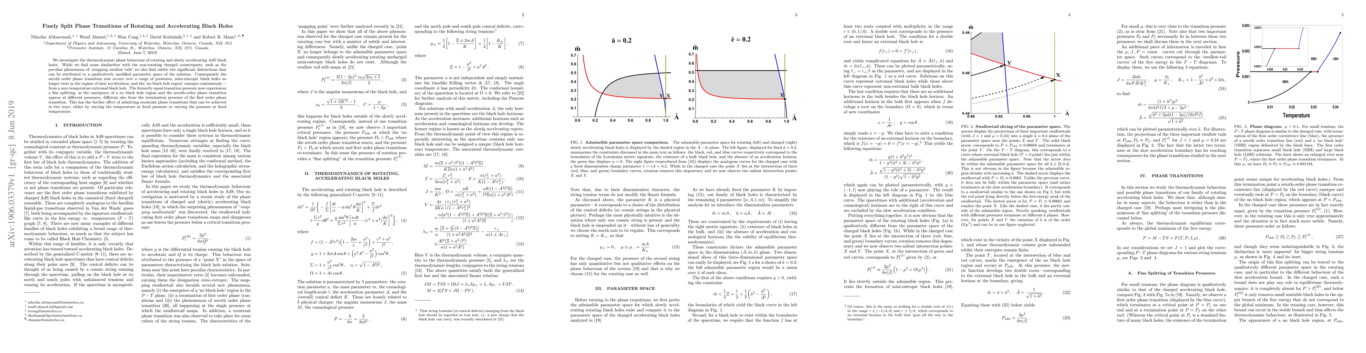 We investigate the thermodynamic phase behaviour of rotating and slowly accelerating AdS black holes. While we find some similarities with the non-rotating charged counterparts, such as the peculiar phenomena of "snapping swallow tails" we also find subtle but significant distinctions that can be attributed to a qualitatively modified parameter space of the solution. Consequently the zeroth order phase transition now occurs over a range of pressures, mini-entropic black holes no longer exist in the regime of slow acceleration, and the "no black hole region" emerges continuously---from a zero temperature extremal black hole. The formerly equal transition pressure now experiences a fine splitting, as the emergence of a no black hole region and the zeroth-order phase transition appear at different pressures, different also from the termination pressure of the first order phase transition. This has the further effect of admitting reentrant phase transitions that can be achieved in two ways, either by varying the temperature at fixed pressure or varying the pressure at fixed temperature.