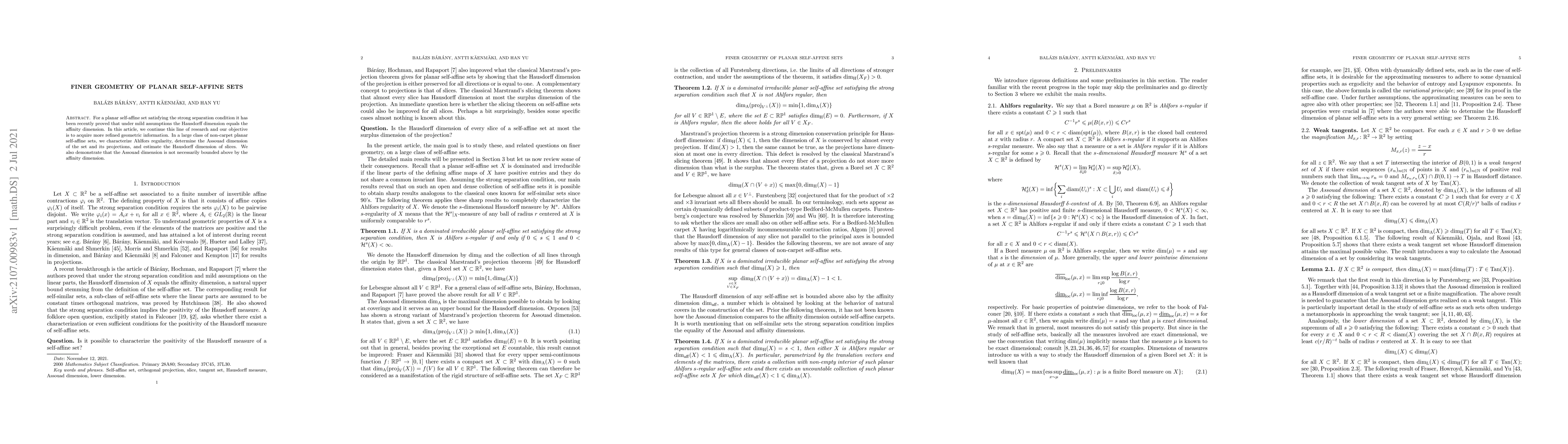 This paper refines the geometric understanding of planar self-affine sets, characterizing their Ahlfors regularity, determining the Assouad dimension and its projections, and estimating the Hausdorff dimension of slices, while showing that the Assouad dimension can exceed the affinity dimension.
