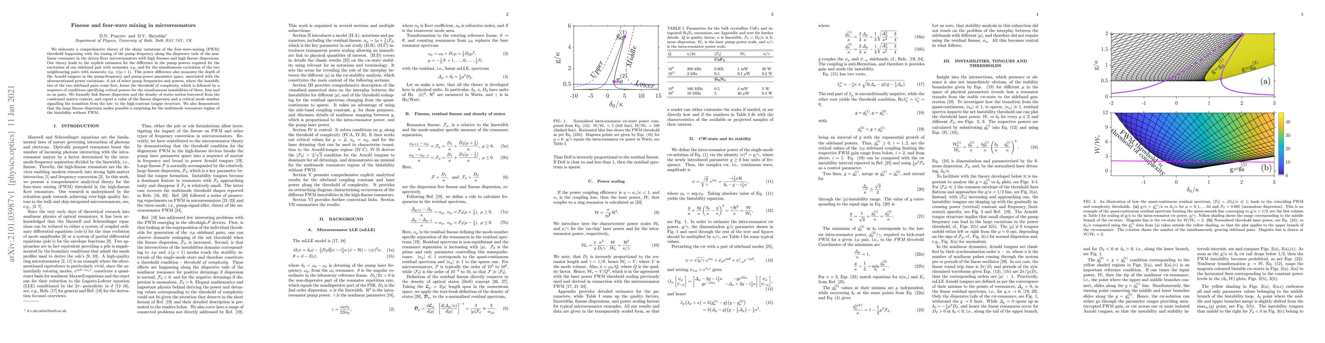 This paper presents a theoretical framework for understanding four-wave mixing in high-finesse Kerr microresonators, detailing how varying the pump frequency affects the FWM threshold. It links finesse dispersion with the density of states and identifies critical conditions for instabilities in sideband pairs, revealing a regime of bistability without FWM due to large finesse dispersion.