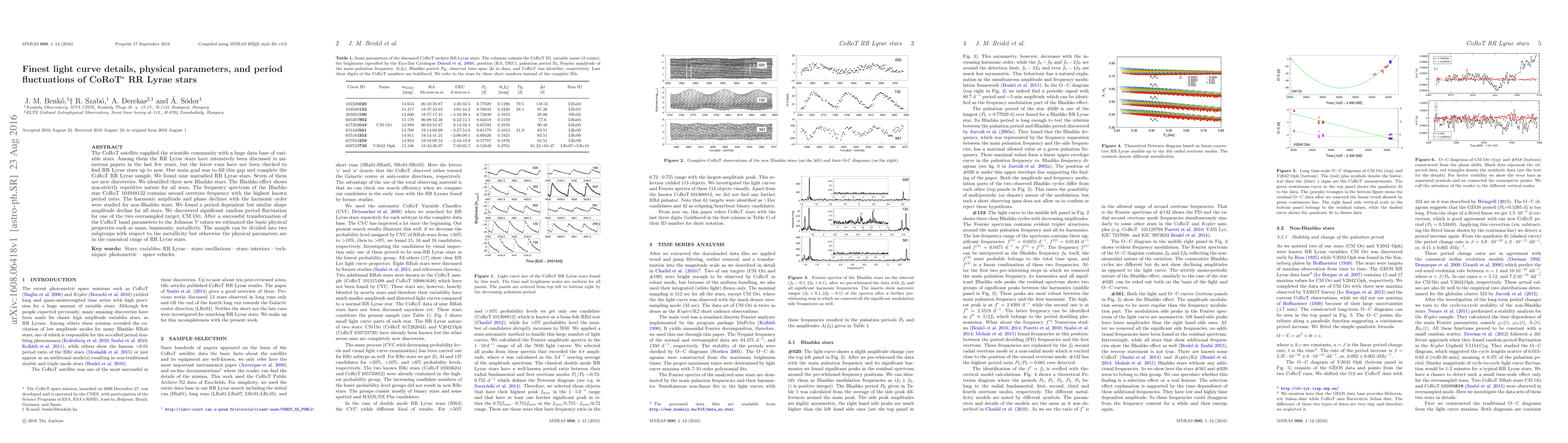 This paper analyzes new RR Lyrae stars discovered from CoRoT satellite data, identifying seven new RR Lyrae stars and three Blazhko stars, and reports significant period fluctuations and physical properties like mass and luminosity for the sample.