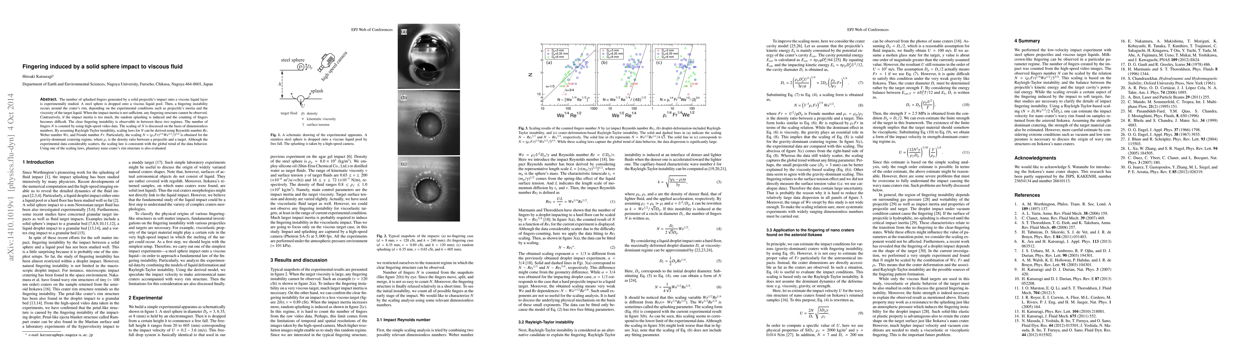 Researchers studied how a solid sphere impact affects a viscous liquid layer, finding that fingering instability occurs between two regimes of impact inertia, with scaling laws derived using dimensionless numbers like Reynolds and Weber numbers.