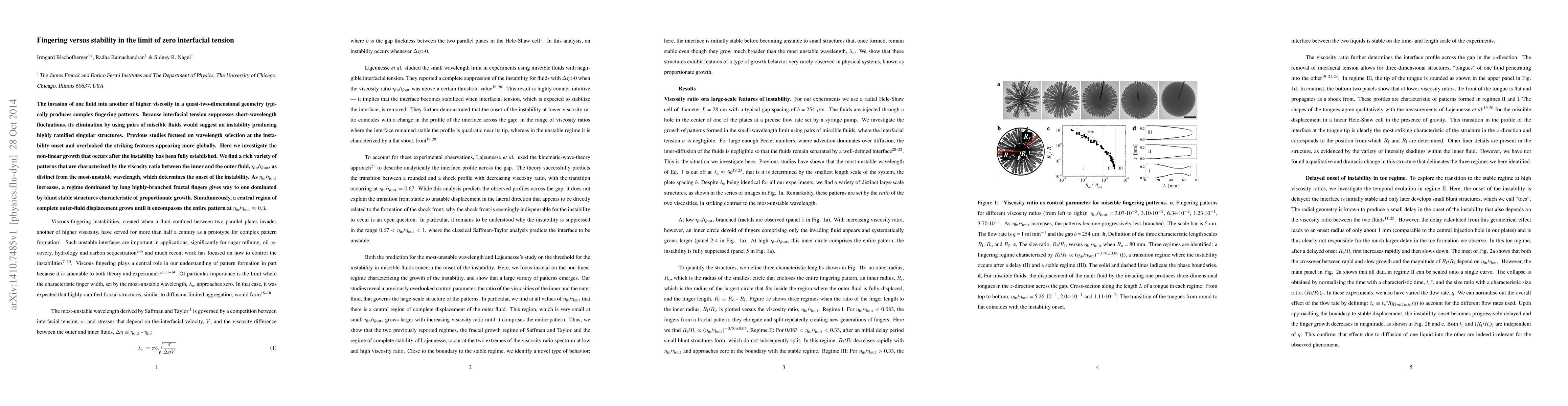 The invasion of one fluid into another of higher viscosity in a quasi-two dimensional geometry typically produces complex fingering patterns. Because interfacial tension suppresses short-wavelength fluctuations, its elimination by using pairs of miscible fluids would suggest an instability producing highly ramified singular structures. Previous studies focused on wavelength selection at the instability onset and overlooked the striking features appearing more globally. Here we investigate the non-linear growth that occurs after the instability has been fully established. We find a rich variety of patterns that are characterized by the viscosity ratio between the inner and the outer fluid, $\eta_{in}$/$\eta_{out}$, as distinct from the most-unstable wavelength, which determines the onset of the instability. As $\eta_{in}$/$\eta_{out}$ increases, a regime dominated by long highly-branched fractal fingers gives way to one dominated by blunt stable structures characteristic of proportionate growth. Simultaneously, a central region of complete outer-fluid displacement grows until it encompasses the entire pattern at $\eta_{in}$/$\eta_{out}$$\approx$0.3.