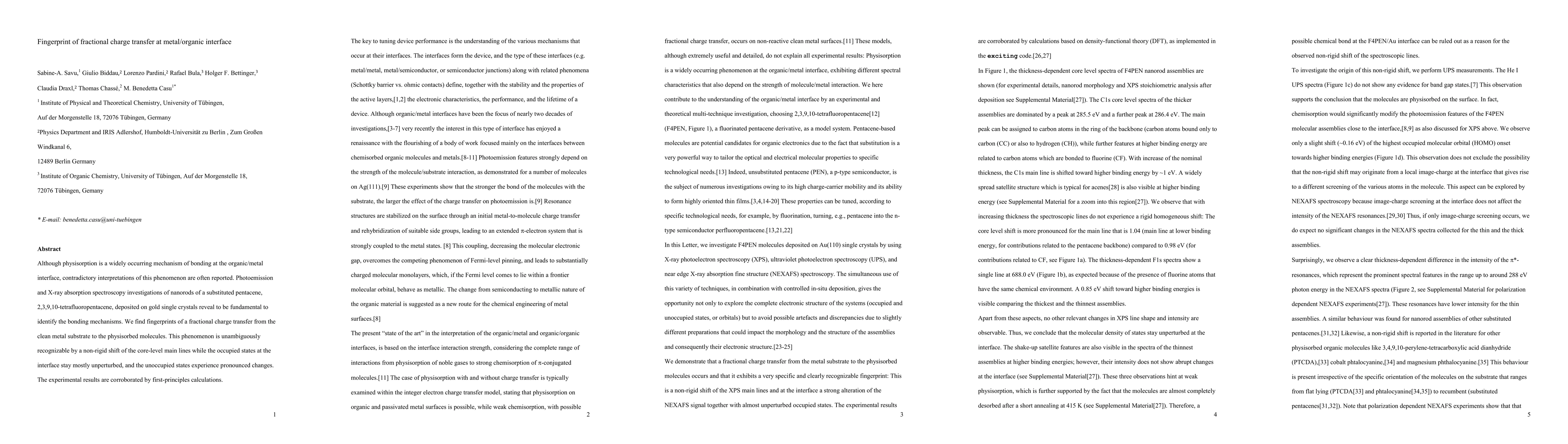 Although physisorption is a widely occurring mechanism of bonding at the organic/metal interface, contradictory interpretations of this phenomenon are often reported. Photoemission and X-ray absorption spectroscopy investigations of nanorods of a substituted pentacene, 2,3,9,10-tetrafluoropentacene, deposited on gold single crystals reveal to be fundamental to identify the bonding mechanisms. We find fingerprints of a fractional charge transfer from the clean metal substrate to the physisorbed molecules. This phenomenon is unambiguously recognizable by a non-rigid shift of the core-level main lines while the occupied states at the interface stay mostly unperturbed, and the unoccupied states experience pronounced changes. The experimental results are corroborated by first-principles calculations.