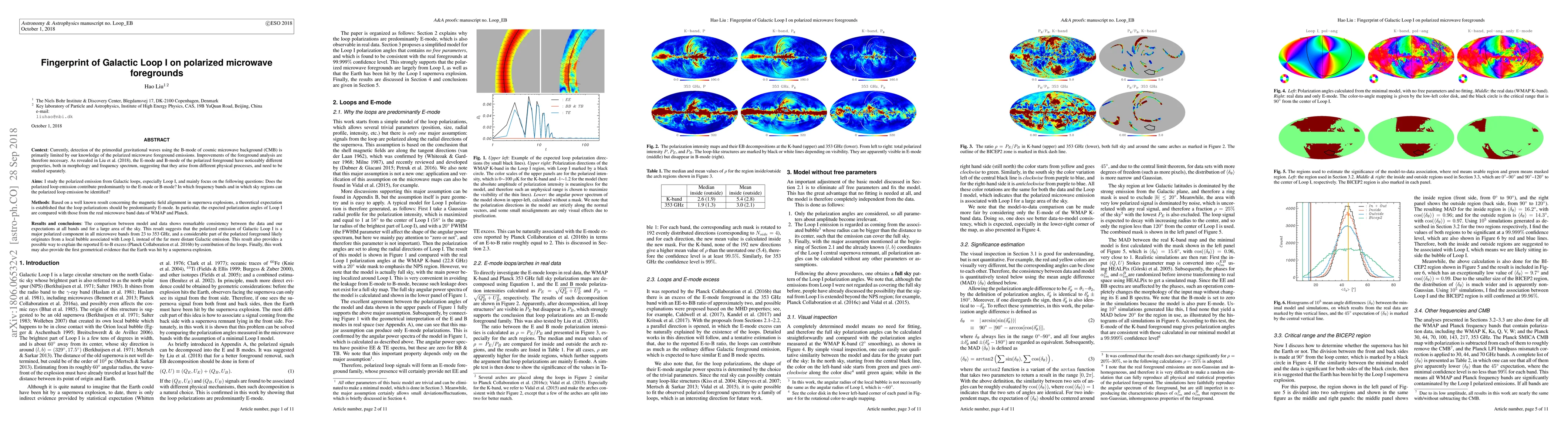 Context: Currently, detection of the primordial gravitational waves by the B-mode of Cosmic Microwave Background (CMB) is primarily limited by our knowledge of the polarized microwave foreground emissions. Thus improvements of the foreground analysis are necessary. As revealed in~\cite{2018arXiv180410382L}, the E-mode and B-mode of the polarized foreground have noticeable different properties, both in morphology and frequency spectrum, suggesting that they arise from different physical processes, and need to be studied separately. Aims: I will study the polarized emission from Galactic loops, especially Loop I, and mainly focus on the following issues: Does it contribute predominantly to the E-mode or B-mode? In which frequency bands and in which sky regions can it be identified? Methods: Based on a well known result about the magnetic field alignment in supernova explosions, a theoretical expectation is established that the loop polarizations should be predominantly E-mode. In particular, the expected polarization angles of Loop I are compared with those from the real microwave band data of WMAP and Planck. Results and conclusions: The comparison between model and data shows remarkable consistency between data and expectation at all bands and for a large area of the sky. This result suggests that the polarized emission of Galactic Loop I is a major polarized component in all microwave bands from 23 to 353 GHz, and a considerable part of the polarized foreground is likely originated from a local bubble associated with Loop I, instead of the far more distant Galactic emission. The result also provides a possible way to explain the reported E-to-B excess~\citep{2016A&A...586A.133P} by contribution of the loops. Finally, this work may also provide the first geometrical evidence that the Earth was hit by a supernova explosion.