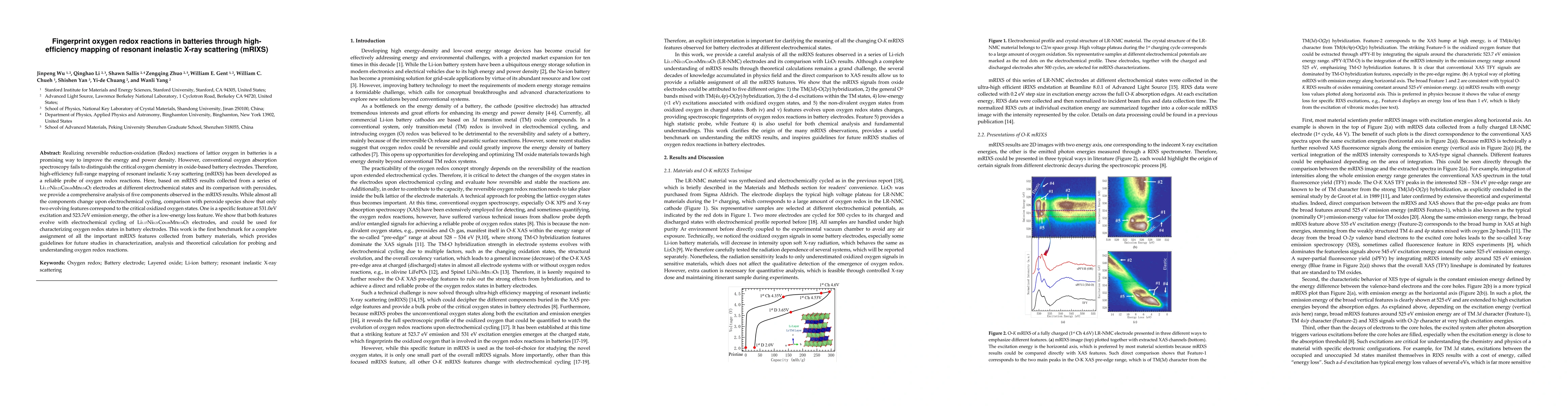This paper utilizes high-efficiency mapping of resonant inelastic X-ray scattering (mRIXS) to analyze oxygen redox reactions in Li1.17Ni0.21Co0.08Mn0.54O2 battery electrodes. It identifies two critical oxygen redox states through mRIXS features, providing a comprehensive analysis and guidelines for future studies on oxygen redox reactions in battery materials.
