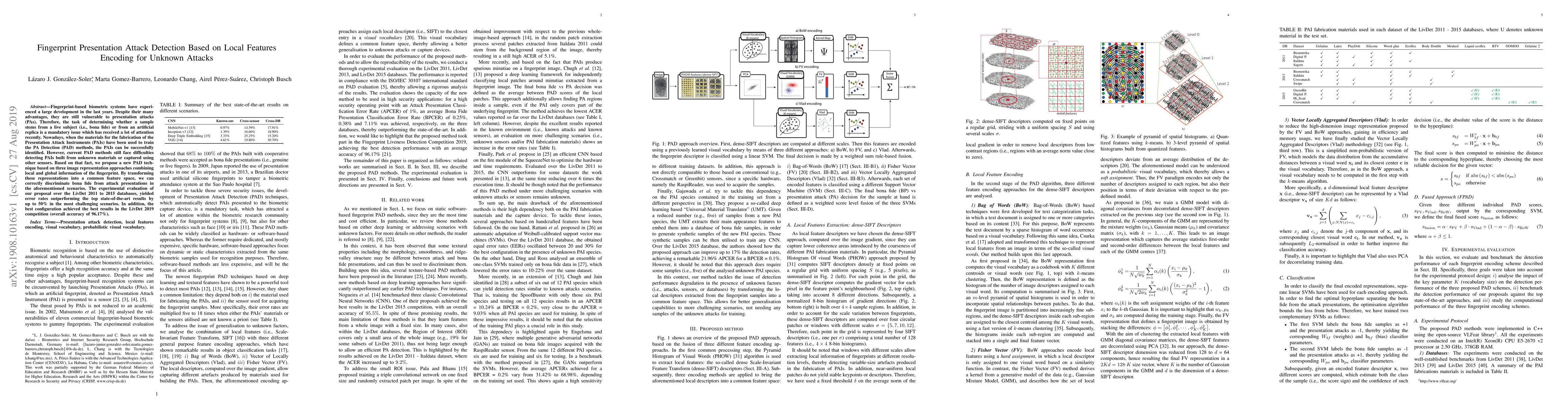 This paper proposes a new Fingerprint Presentation Attack Detection (PAD) technique using local features encoding for unknown attacks. The method combines local and global fingerprint information, achieving superior performance in detecting attacks from unknown materials and sensors, outperforming state-of-the-art methods by up to 50% in challenging scenarios.