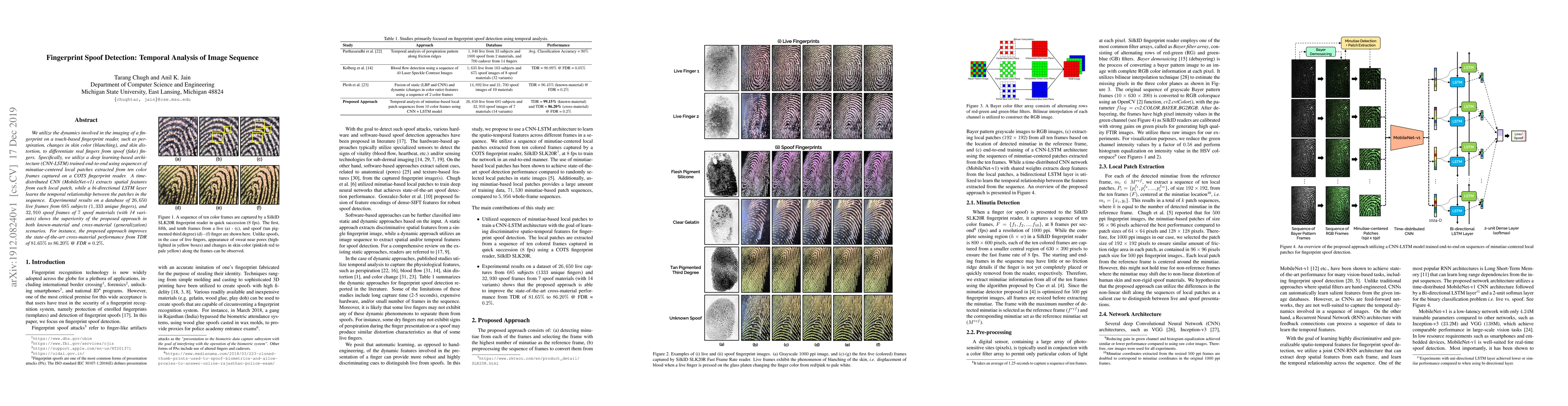 Researchers developed a deep learning-based system to detect fingerprint spoofing using temporal analysis of image sequences, achieving improved performance over existing methods in both known-material and cross-material scenarios.