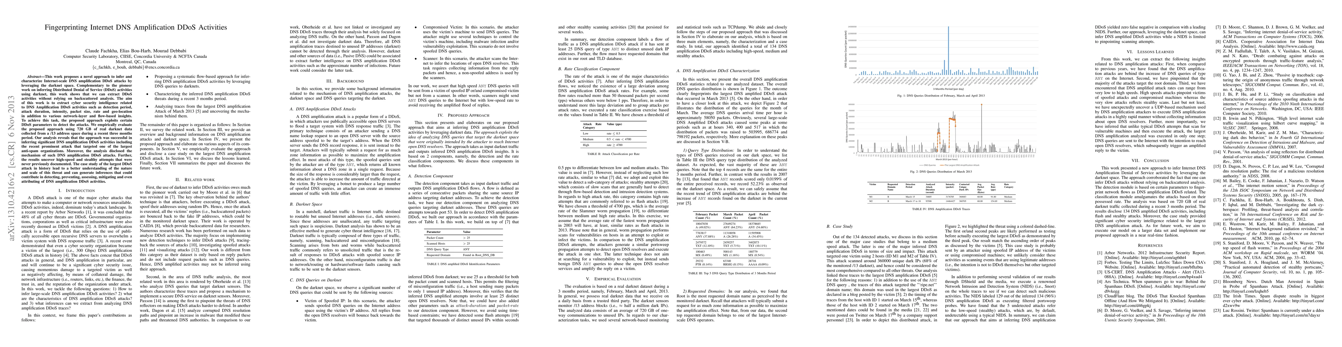 The paper presents a two-component approach for inferring DNS amplification DDoS activities, combining detection and rate classification components, which leverages darknet traffic analysis to identify and categorize DDoS attacks.