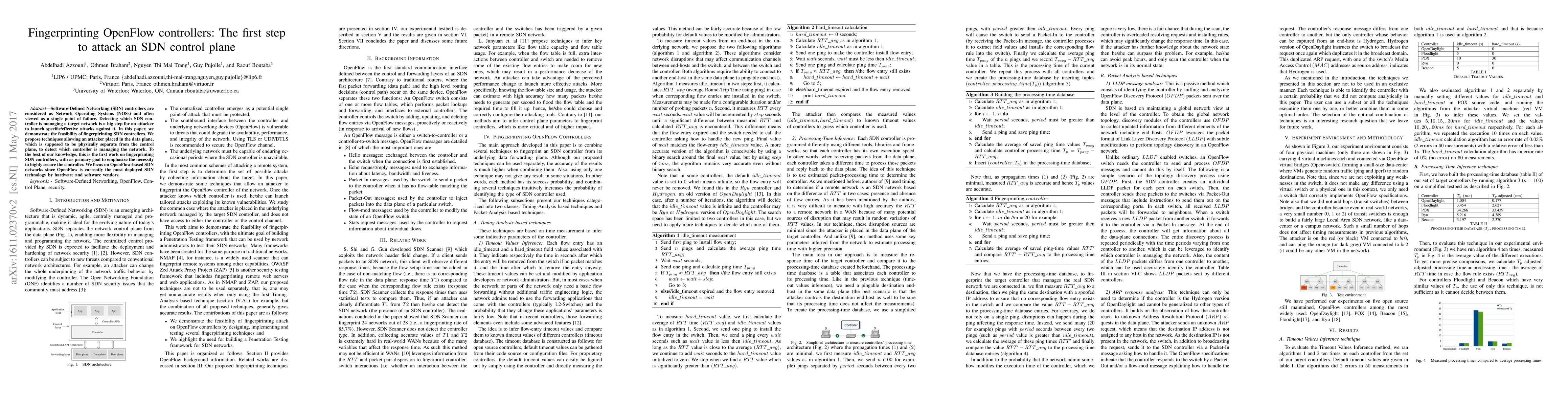 This paper introduces the first techniques for fingerprinting OpenFlow controllers in SDN networks, demonstrating how an attacker in the data plane can identify the controlling SDN controller. The study highlights the critical need for securing SDN controllers to prevent effective attacks.