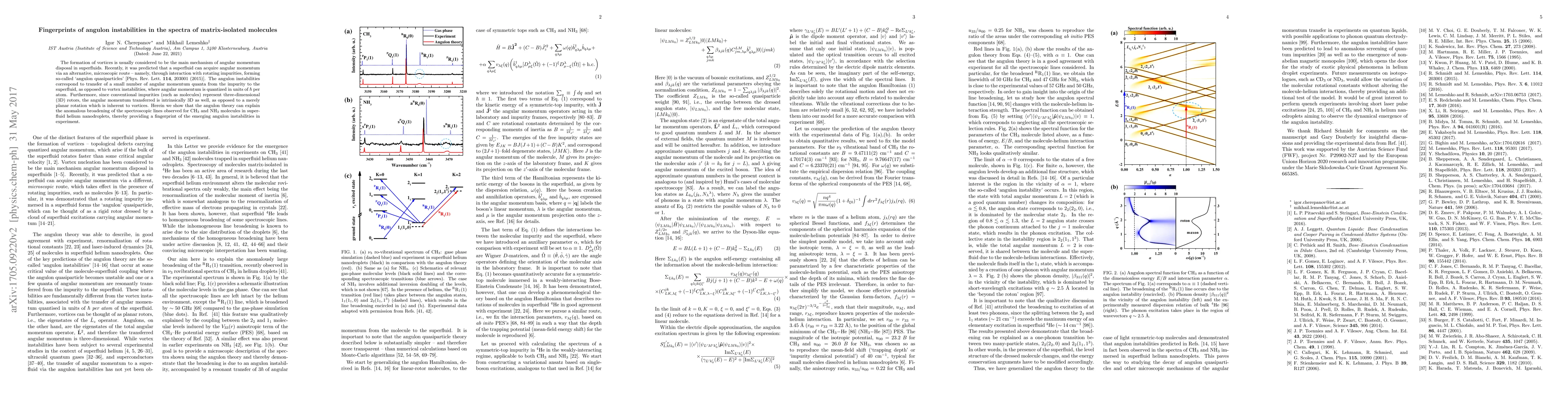 The research explains how angulon instabilities, a microscopic angular momentum transfer mechanism in superfluids via rotating impurities, can account for anomalous spectral line broadening observed in CH3 and NH3 molecules within superfluid helium nanodroplets. This provides experimental evidence for angulon theory, distinguishing it from vortex-based angular momentum disposal.