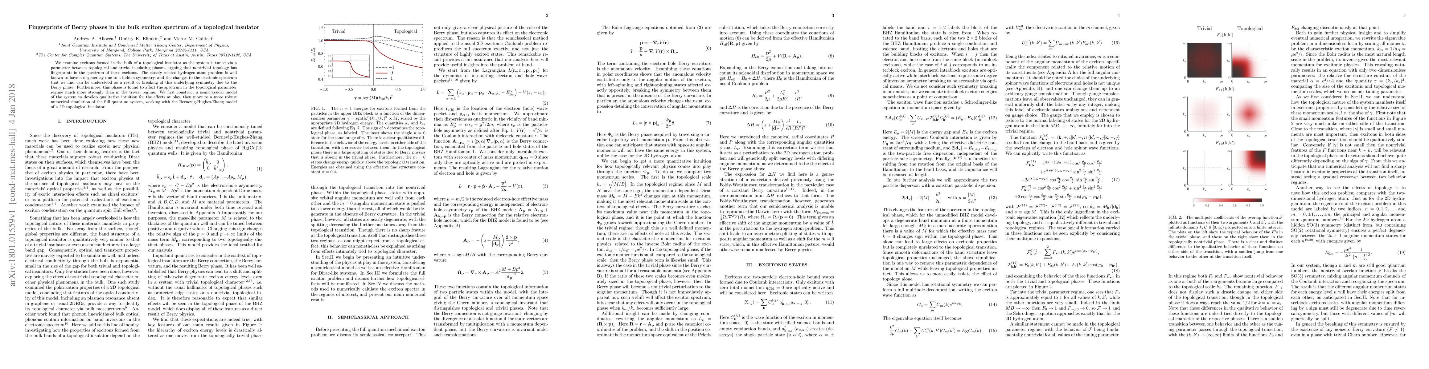 We examine excitons formed in the bulk of a topological insulator as the system is tuned via a parameter between topological and trivial insulating phases, arguing that nontrivial topology has fingerprints in the spectrum of these excitons. The closely related hydrogen atom problem is well known to have a degeneracy due to a hidden symmetry, and the changes to the excitonic spectrum that we find can be understood as a result of breaking of this underlying symmetry due to the Berry phase. Furthermore, this phase is found to affect the spectrum in the topological parameter regime much more strongly than in the trivial regime. We first construct a semiclassical model of the system to develop qualitative intuition for the effects at play, then move to a more robust numerical simulation of the full quantum system, working with the Bernevig-Hughes-Zhang model of a 2D topological insulator.