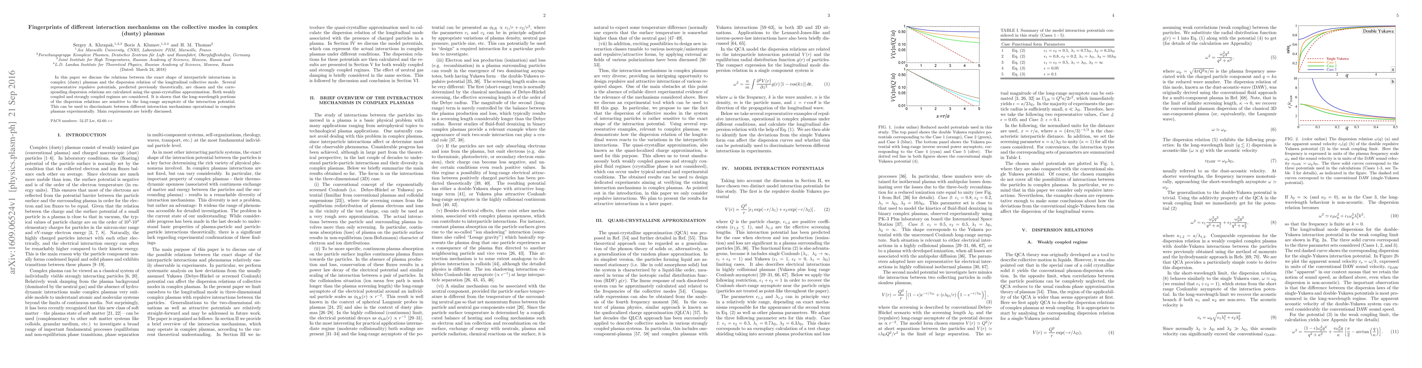 In this paper we discuss the relations between the exact shape of interparticle interactions in complex (dusty) plasmas and the dispersion relation of the longitudinal collective mode. Several representative repulsive potentials, predicted previously theoretically, are chosen and the corresponding dispersion relations are calculated using the quasi-crystalline approximation. Both weakly coupled and strongly coupled regimes are considered. It is shown that the long-wavelength portions of the dispersion relations are sensitive to the long-range asymptote of the interaction potential. This can be used to discriminate between different interaction mechanisms operational in complex plasmas experimentally. Main requirements are briefly discussed.