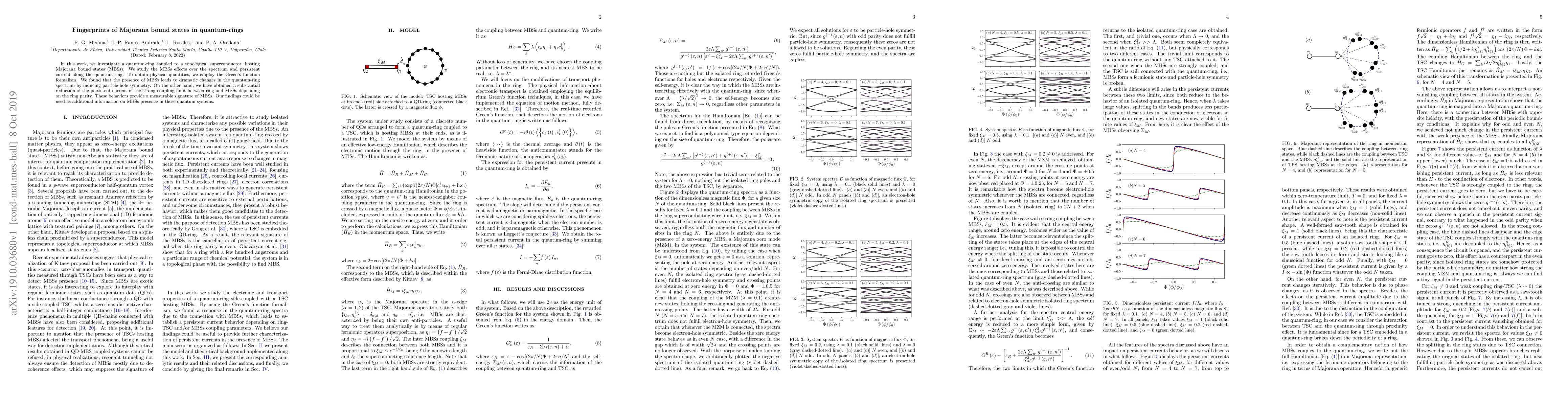 In this work, we investigate a quantum-ring coupled to a topological superconductor, hosting Majorana bound states (MBSs). We study the MBSs effects over the spectrum and persistent current along the quantum-ring. To obtain physical quantities, we employ the Green's function formalism. We found that the presence of MBSs leads to dramatic changes in the quantum-ring spectrum by inducing particle-hole symmetry. On the other hand, we have obtained a substantial reduction of the persistent current in the strong coupling limit between ring and MBSs depending on the ring parity. These behaviors provide a measurable signature of MBSs. Our findings could be used as additional information on MBSs presence in these quantum systems.