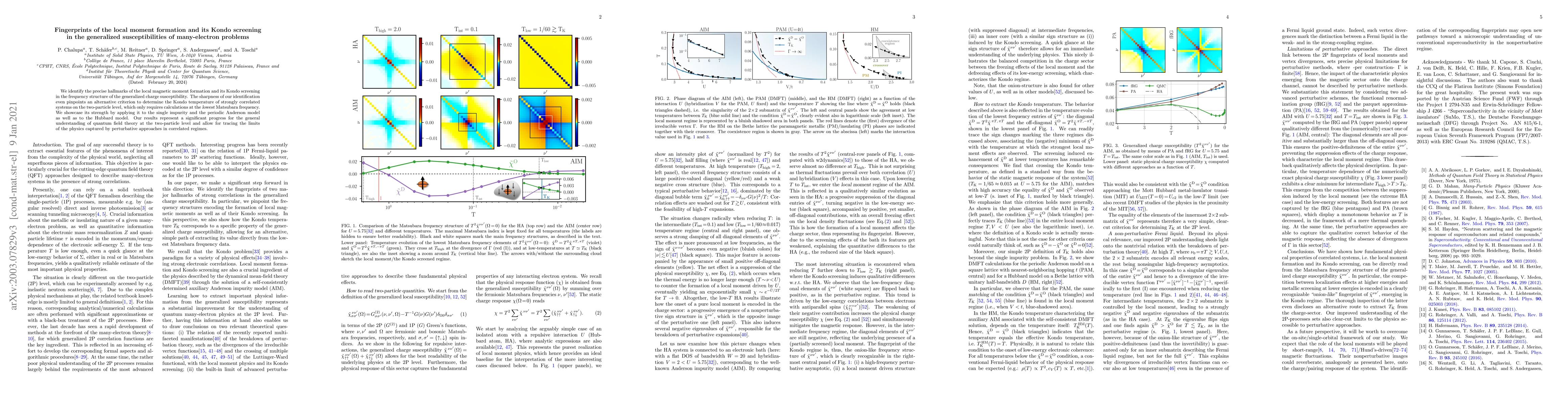 This paper identifies key features of local magnetic moment formation and Kondo screening in the generalized charge susceptibility, proposing a new method to determine the Kondo temperature using calculations at the lowest Matsubara frequency. It demonstrates this approach's effectiveness in models like the single impurity, periodic Anderson, and Hubbard models, advancing the understanding of quantum field theory in strongly correlated systems.