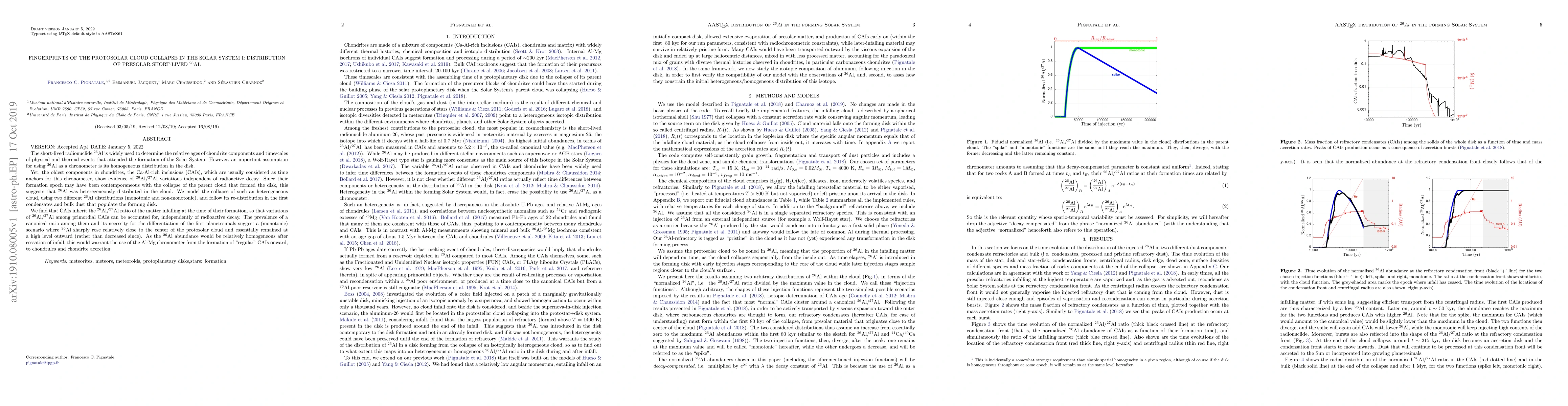 This paper investigates the distribution of the short-lived nuclide $^{26}$Al in the protosolar cloud, suggesting its heterogeneous distribution during the Solar System's formation. It models the cloud collapse and finds that Ca-Al-rich inclusions (CAIs) reflect the $^{26}$Al/$^{27}$Al ratio of the infalling material, supporting a monotonic distribution scenario where $^{26}$Al was high near the cloud's center.