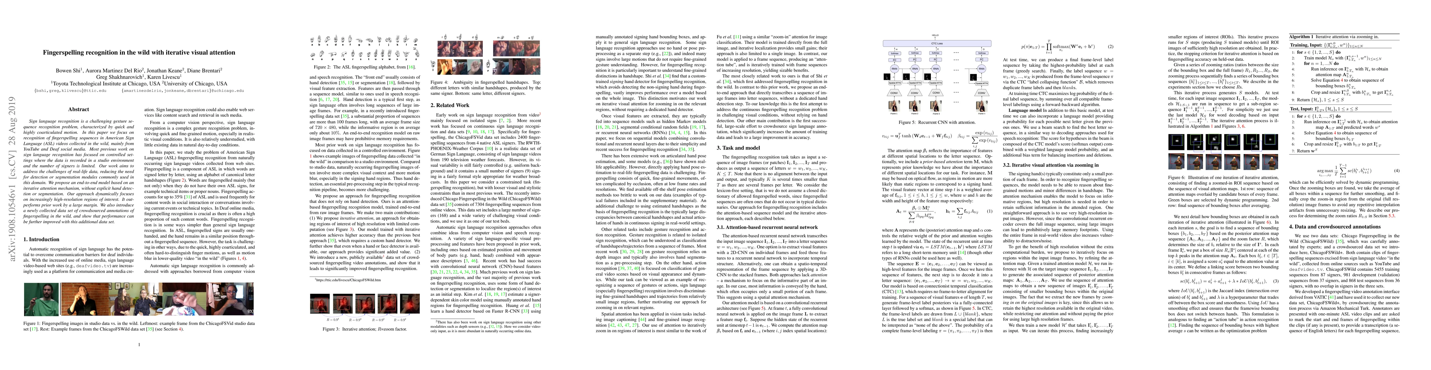 This paper proposes an end-to-end fingerspelling recognition model for American Sign Language videos from real-world sources, utilizing an iterative visual attention mechanism without hand detection. The approach outperforms existing methods and benefits from a newly collected dataset of crowdsourced annotations.