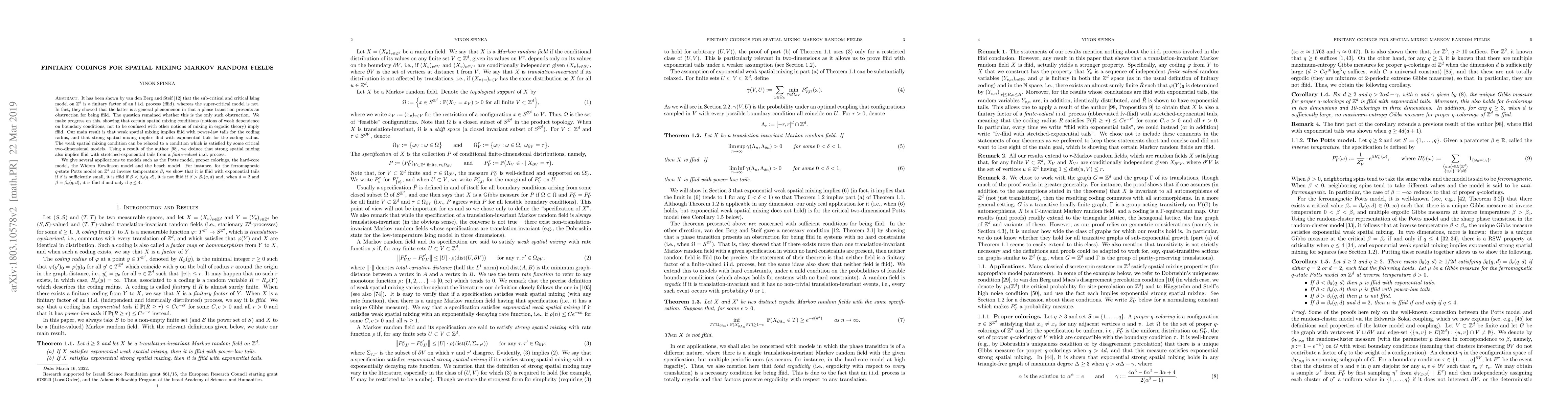This paper investigates finitary codings for spatial mixing Markov random fields, demonstrating that weak spatial mixing implies finitary factor independence with power-law tails, while strong spatial mixing implies finitary factor independence with exponential tails. Applications to various models show distinct behaviors depending on parameters like inverse temperature and dimension.