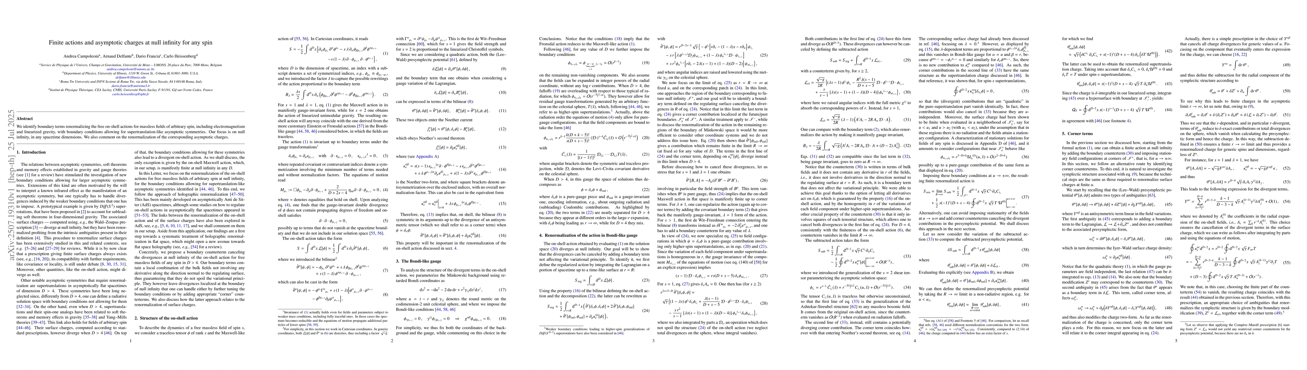 We identify boundary terms renormalizing the free on-shell actions for massless fields of arbitrary spin, including electromagnetism and linearized gravity, with boundary conditions allowing for supertranslation-like asymptotic symmetries. Our focus is on null infinity, in any spacetime dimensions. We also comment on the renormalization of the corresponding asymptotic charges.