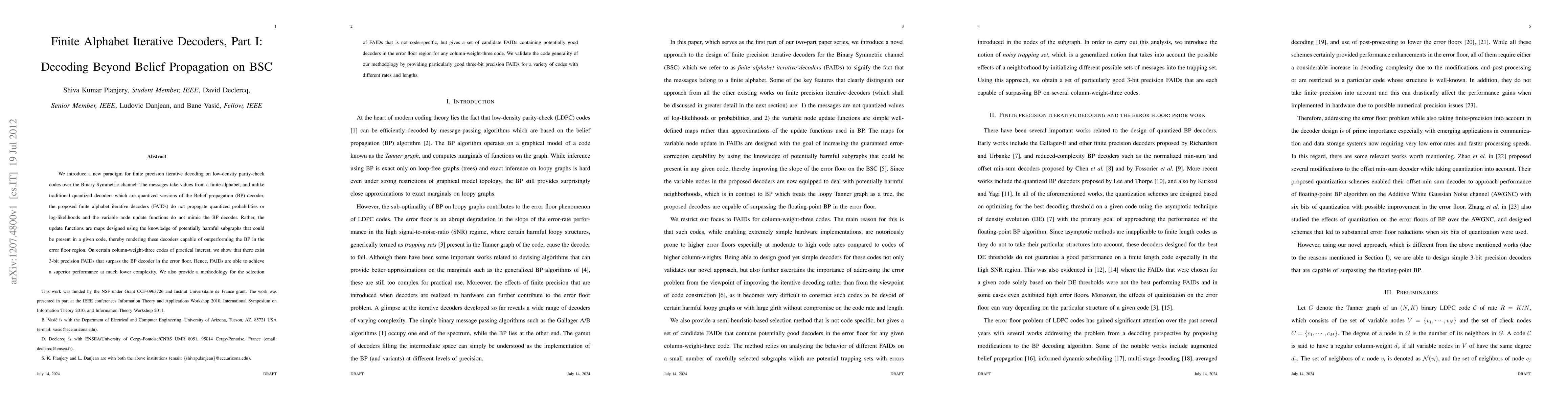 This paper introduces finite alphabet iterative decoders (FAIDs) for low-density parity-check codes over the Binary Symmetric Channel, which outperform traditional Belief Propagation decoders in the error floor region. Unlike quantized versions of BP, FAIDs use update functions designed to avoid harmful subgraphs, achieving superior performance with lower complexity.