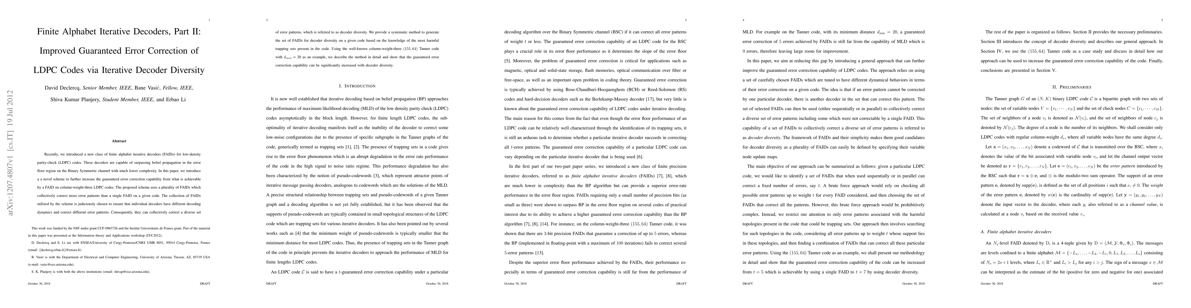 This paper proposes a scheme using multiple finite alphabet iterative decoders (FAIDs) to enhance the error correction capability of LDPC codes, leveraging decoder diversity to correct a wider range of error patterns. The method systematically generates a set of FAIDs based on harmful trapping sets, significantly improving error correction over a single FAID, as demonstrated with the $(155,64)$ Tanner code.