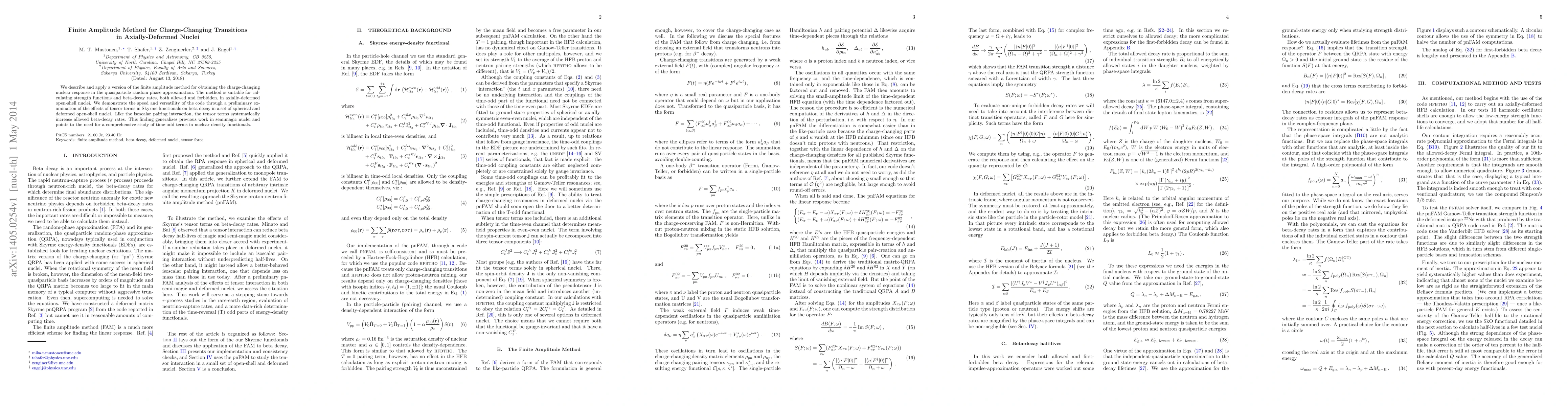 This paper presents a finite amplitude method for calculating charge-changing nuclear responses in axially-deformed open-shell nuclei using quasiparticle random phase approximation. The method's effectiveness is demonstrated by examining the impact of tensor terms in Skyrme functionals on beta decay rates, revealing their systematic increase in allowed beta-decay rates.