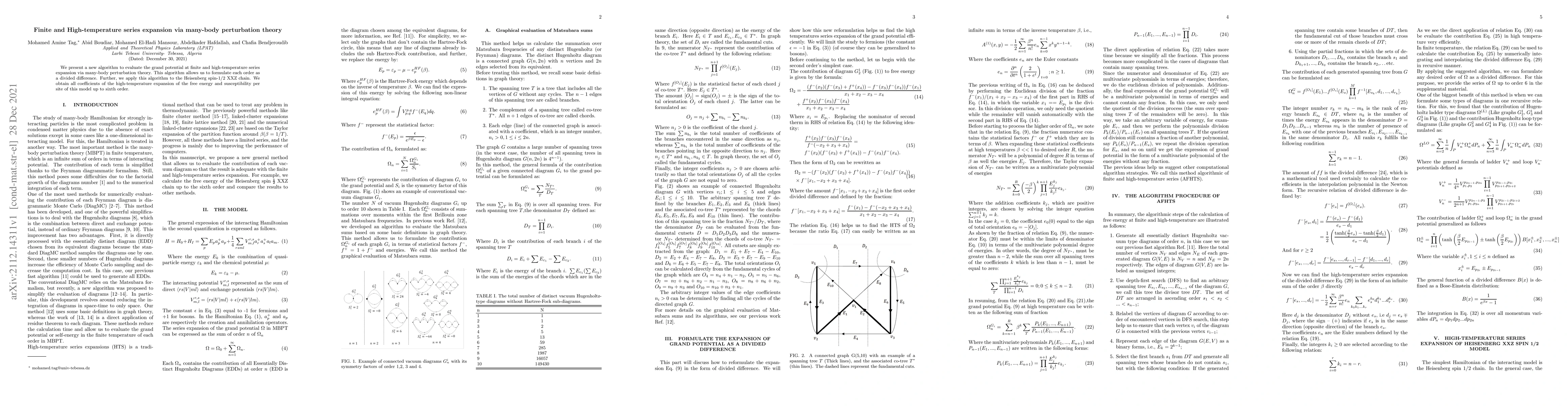 This paper introduces a novel algorithm for computing the grand potential at finite and high temperatures using many-body perturbation theory, expressed as divided differences. It applies this method to the Heisenberg spin-1/2 XXZ chain, deriving the high-temperature expansion coefficients for free energy and susceptibility up to sixth order.