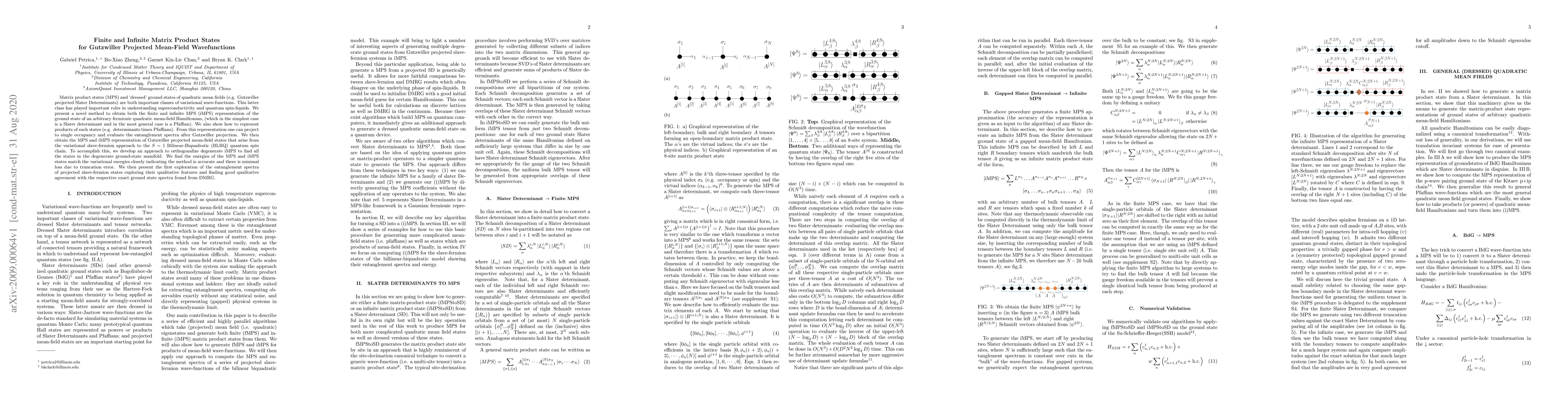 Matrix product states (MPS) and `dressed' ground states of quadratic mean fields (e.g. Gutzwiller projected Slater Determinants) are both important classes of variational wave-functions. This latter class has played important roles in understanding superconductivity and quantum spin-liquids. We present a novel method to obtain both the finite and infinite MPS (iMPS) representation of the ground state of an arbitrary fermionic quadratic mean-field Hamiltonian, (which in the simplest case is a Slater determinant and in the most general case is a Pfaffian). We also show how to represent products of such states (e.g. determinants times Pfaffians). From this representation one can project to single occupancy and evaluate the entanglement spectra after Gutzwiller projection. We then obtain the MPS and iMPS representation of Gutzwiller projected mean-field states that arise from the variational slave-fermion approach to the $S=1$ Bilinear-Biquadratic (BLBQ) quantum spin chain. To accomplish this, we develop an approach to orthogonalize degenerate iMPS to find all the states in the degenerate ground-state manifold. We find the energies of the MPS and iMPS states match the variational energies closely indicating the method is accurate and there is minimal loss due to truncation error. We then present the first exploration of the entanglement spectra of projected slave-fermion states exploring their qualitative features and finding good qualitative agreement with the respective exact ground state spectra found from DMRG.