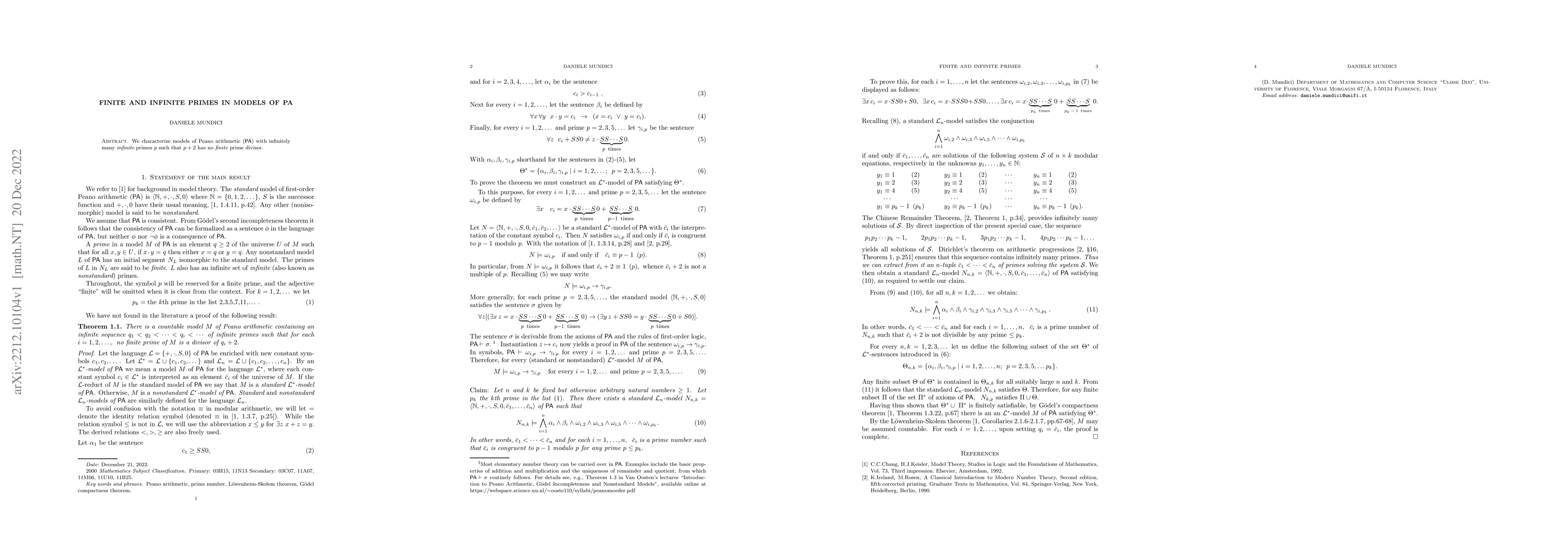We characterize models of Peano arithmetic (PA) with infinitely many infinite primes p such that p + 2 has no finite prime divisor.