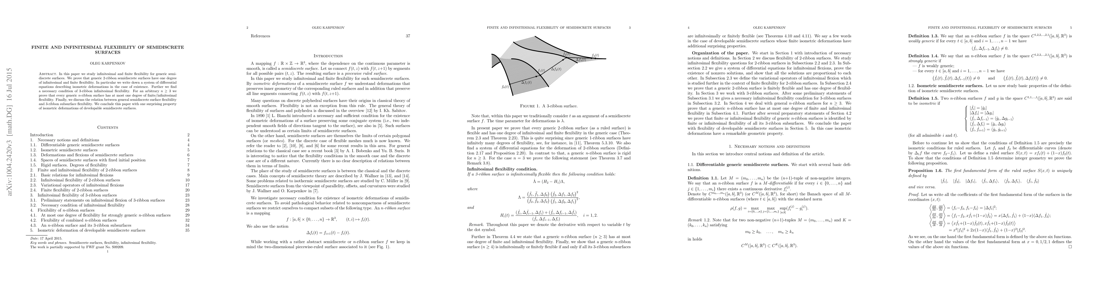 This paper studies flexibility in semidiscrete surfaces, finding that generic 2-ribbon surfaces have one degree of infinitesimal and finite flexibility, while generic n-ribbon surfaces have at most one degree.