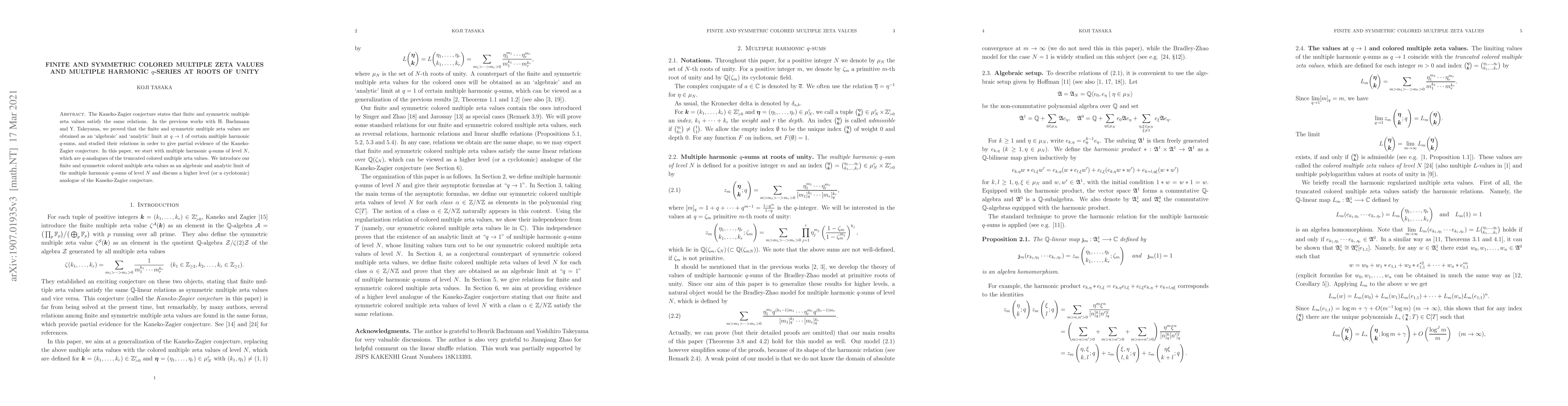 This paper proves the Kaneko-Zagier conjecture for finite and symmetric multiple zeta values by showing their equivalence with truncated multiple harmonic q-series at roots of unity, extending previous work and introducing colored multiple zeta values.