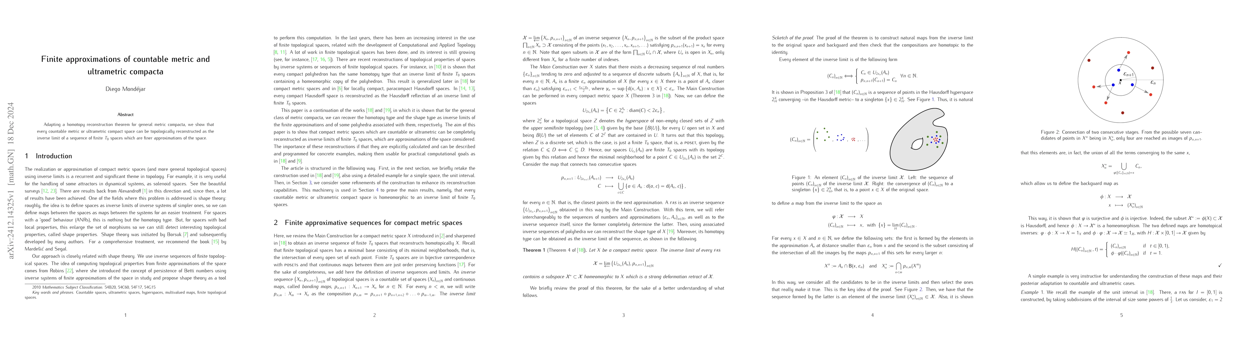 Adapting a homotopy reconstruction theorem for general metric compacta, we show that every countable metric or ultrametric compact space can be topologically reconstructed as the inverse limit of a sequence of finite $T_0$ spaces which are finer approximations of the space.