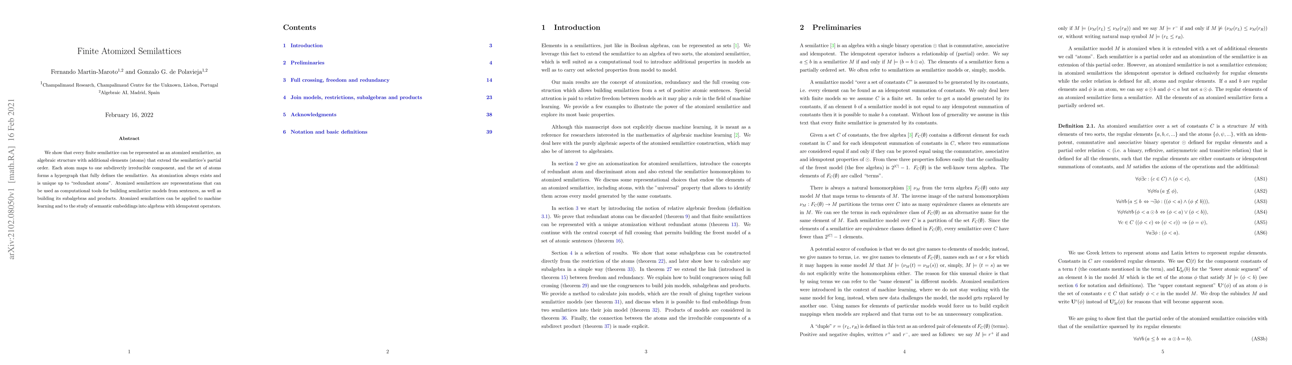 This paper demonstrates that every finite semilattice can be uniquely represented as an atomized semilattice, which includes additional elements (atoms) that extend the semilattice's partial order. These atoms map to subdirectly irreducible components, and their hypergraph structure fully defines the semilattice, with applications in computational modeling and machine learning.