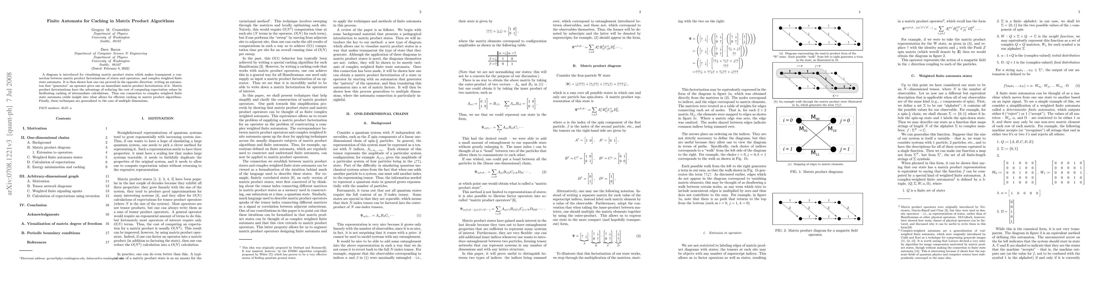 Researchers developed a method to visualize matrix product states using finite automata, enabling efficient caching in matrix product algorithms and reducing computational cost for expectation values.