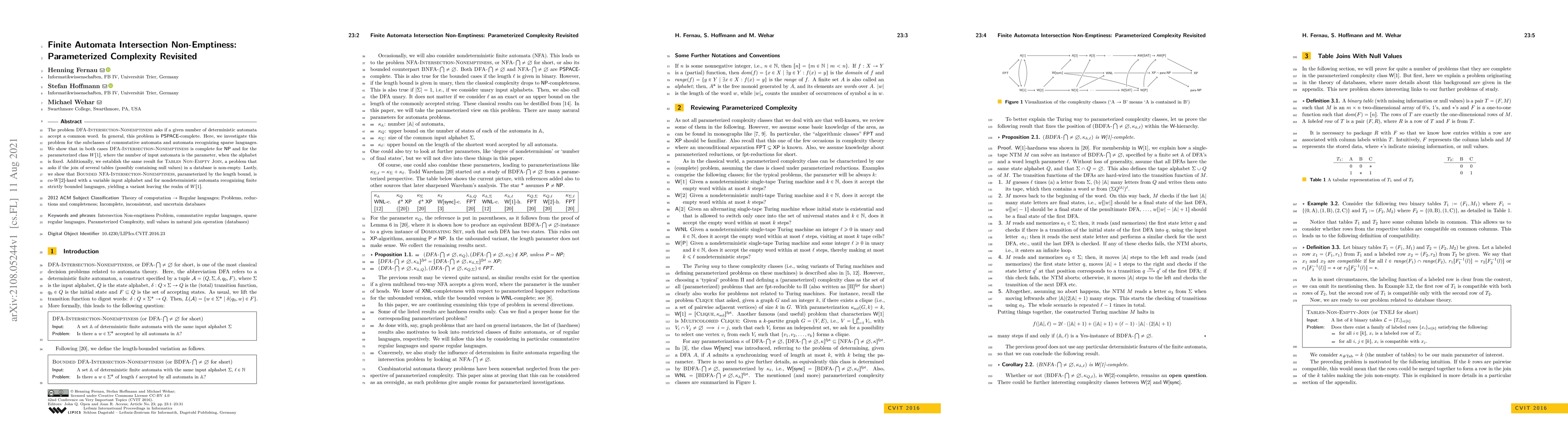 The problem DFA-Intersection-Nonemptiness asks if a given number of deterministic automata accept a common word. In general, this problem is PSPACE-complete. Here, we investigate this problem for the subclasses of commutative automata and automata recognizing sparse languages. We show that in both cases DFA-Intersection-Nonemptiness is complete for NP and for the parameterized class $W[1]$, where the number of input automata is the parameter, when the alphabet is fixed. Additionally, we establish the same result for Tables Non-Empty Join, a problem that asks if the join of several tables (possibly containing null values) in a database is non-empty. Lastly, we show that Bounded NFA-Intersection-Nonemptiness, parameterized by the length bound, is $\mbox{co-}W[2]$-hard with a variable input alphabet and for nondeterministic automata recognizing finite strictly bounded languages, yielding a variant leaving the realm of $W[1]$.