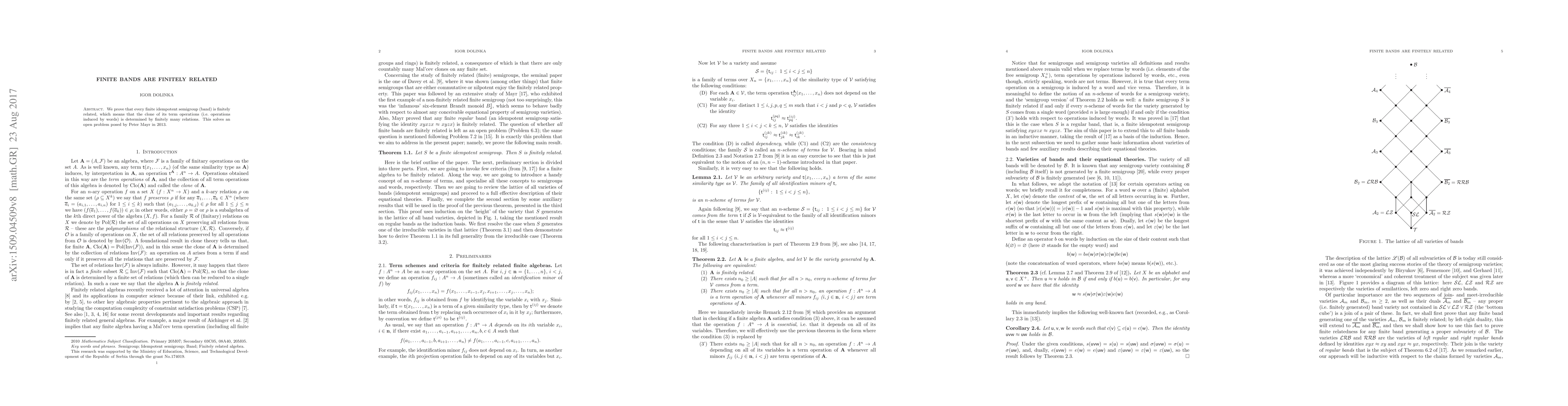 Summary: This paper proves that every finite idempotent semigroup, also known as a finite band, is finitely related, meaning its term operations are determined by a finite set of relations, thereby solving an open problem proposed by Peter Mayr in 2013.